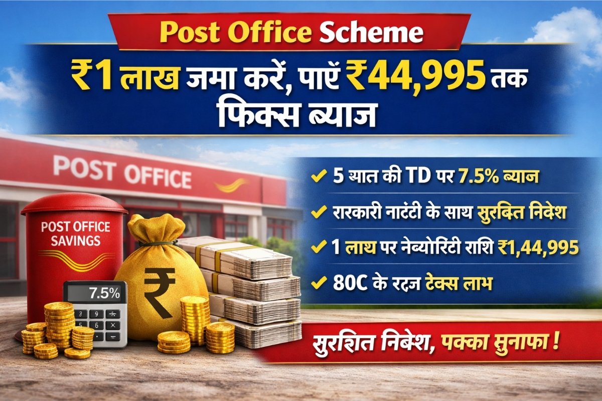Post Office Scheme: ₹1 लाख जमा करें, पाएं ₹44,995 तक फिक्स ब्याज अगर आप सुरक्षित निवेश के साथ तय रिटर्न चाहते हैं, तो पोस्ट ऑफिस की टाइम डिपॉजिट (TD) स्कीम इन दिनों काफी चर्चा में है। latest update के मुताबिक, जहां कई बैंकों ने ब्याज दरों में कटौती की है, वहीं डाकघर की ब्याज दरें … Read more