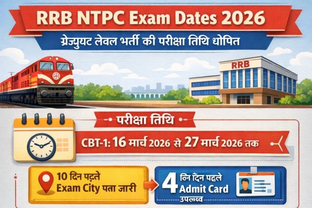 RRB NTPC Exam Dates 2026: ग्रेजुएट लेवल भर्ती की परीक्षा तिथि घोषित, जानें Official Details रेलवे में नौकरी की तैयारी कर रहे लाखों युवाओं के लिए बड़ी खबर सामने आई है। RRB NTPC Graduate Level Recruitment (CEN 06/2025) के तहत होने वाली सीबीटी-1 परीक्षा की तारीखों का आधिकारिक ऐलान कर दिया गया है। यह latest … Read more