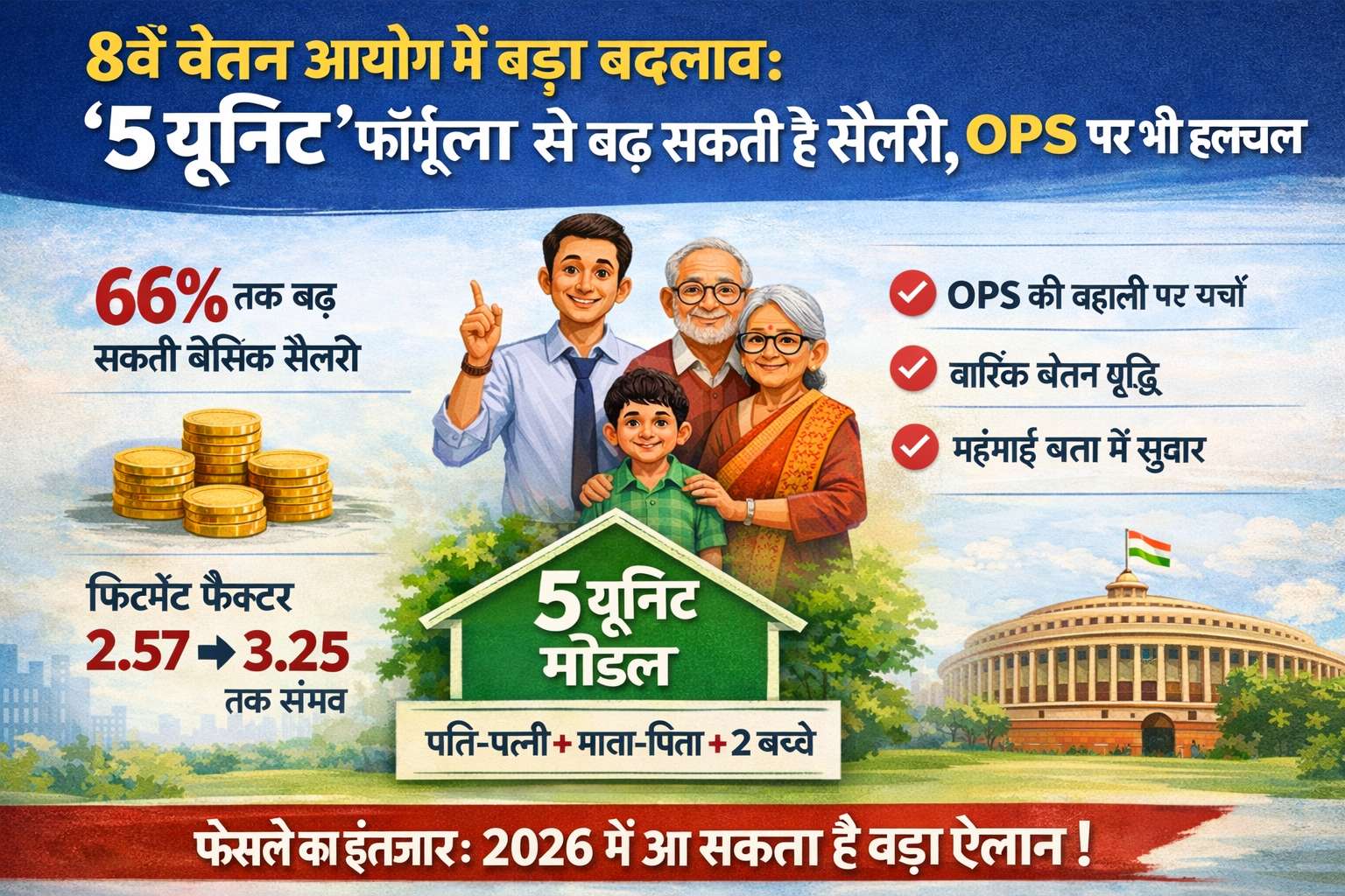 8वें वेतन आयोग में बड़ा बदलाव: 5 यूनिट फॉर्मूला से बढ़ सकती है सैलरी, OPS पर भी हलचल साल 2026 की शुरुआत केंद्रीय कर्मचारियों और पेंशनभोगियों के लिए कुछ खास लेकर आ सकती है। पिछले कुछ समय से 8वें वेतन आयोग को लेकर जो चर्चाएं चल रही थीं, अब वे तेज होती दिख रही हैं। … Read more