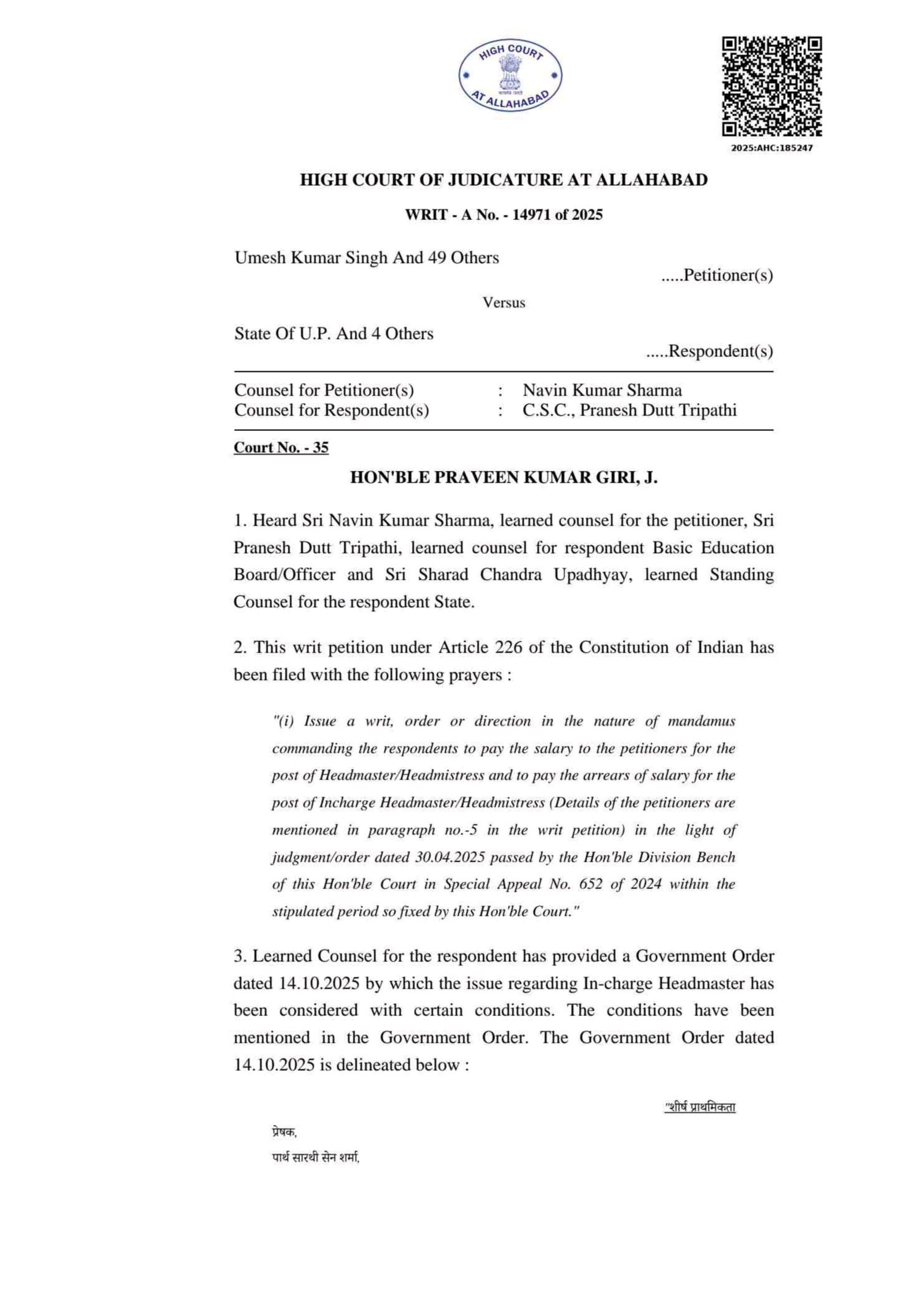 14 अक्टूबर आदेश के बाद वरिष्ठता सूची से इंचार्ज बनाने की प्रक्रिया पर कोर्ट ने याचिका खारिज की