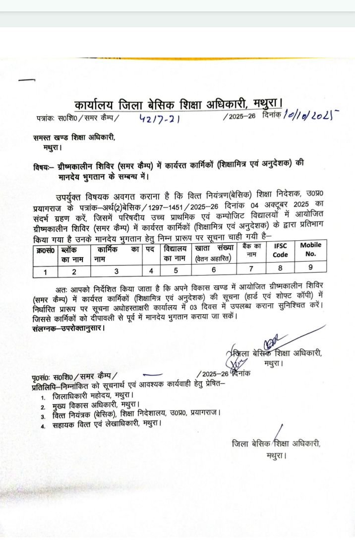 3 दिवसीय के अंदर शिक्षामित्रों एवं अनुदेशकों की सूचना उपलब्ध कराए जाने के सम्बन्ध में October 12, 2025 by Jaswant Singh 3 दिवसीय के अंदर शिक्षामित्रों एवं अनुदेशकों की सूचना उपलब्ध कराए जाने के सम्बन्ध में BSA साहब का आदेश जारी
