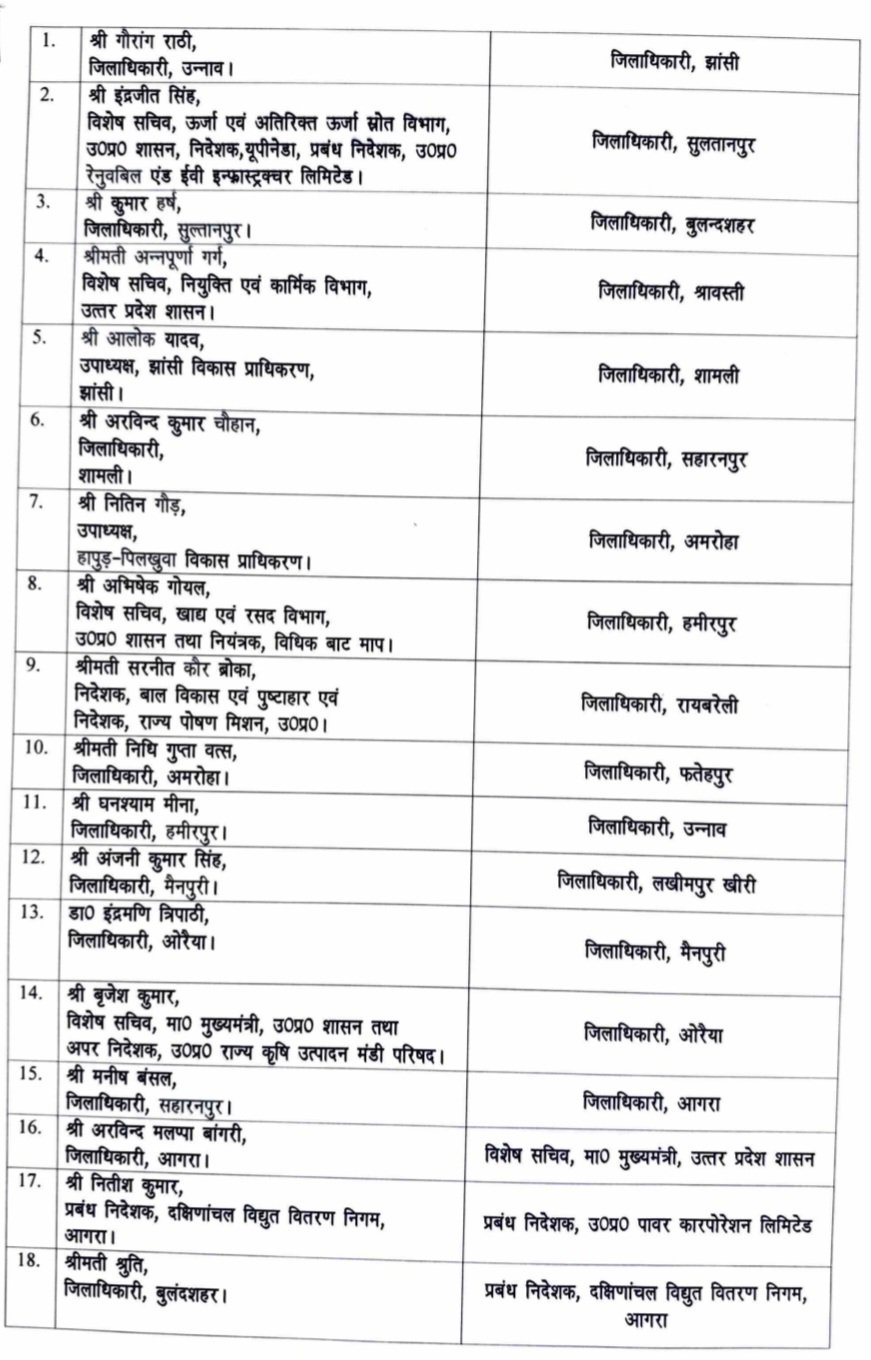 18 श्रीमती श्रुति जिलाधिकारी, बुलंदशहर प्रबंध निदेशक, विद्युत वितरण निगम, आगरा