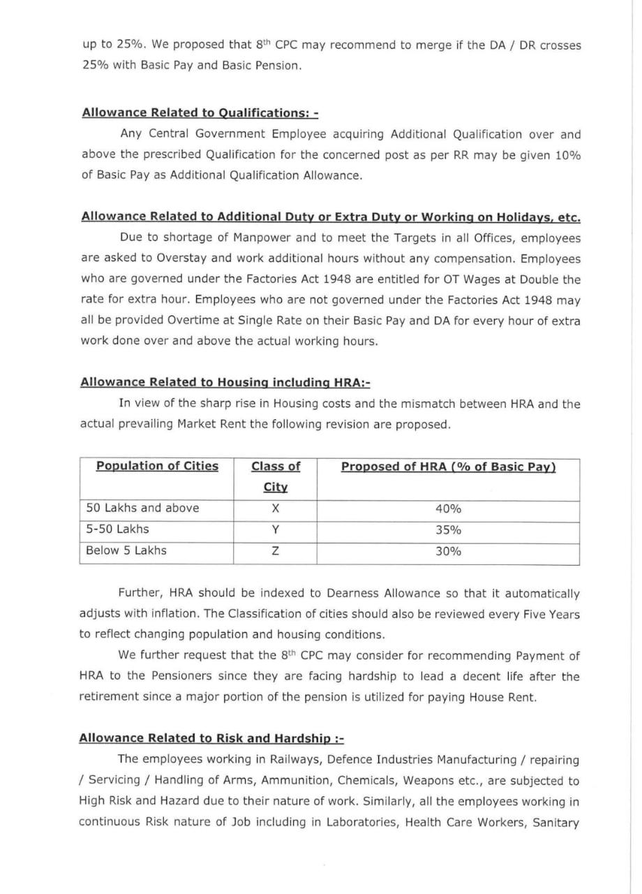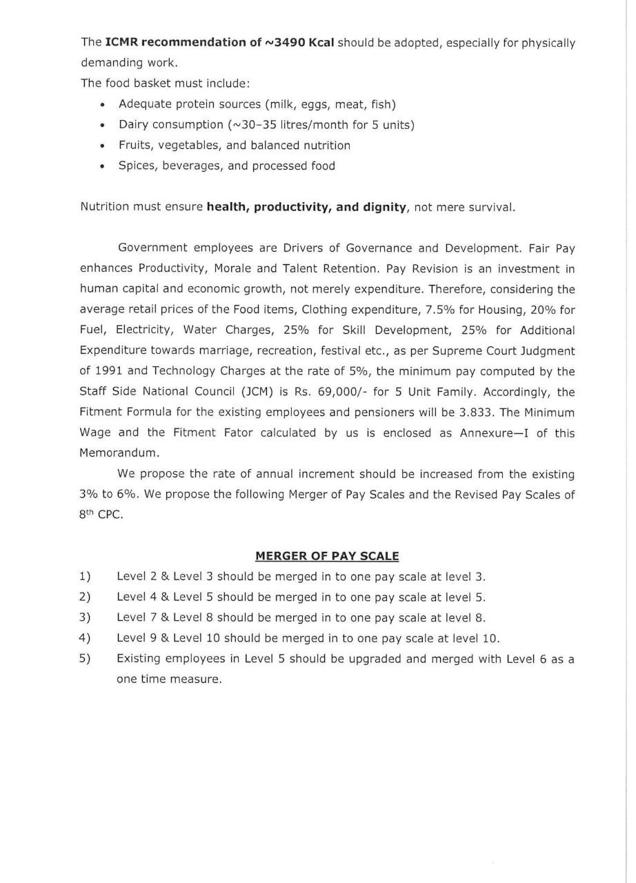 सबसे अहम बात यह है कि न्यूनतम बेसिक वेतन को बढ़ाकर ₹69,000 करने की मांग की गई है। इसके साथ ही फिटमेंट फैक्टर को 3.833 रखने का सुझाव दिया गया है, जो मौजूदा वेतन को काफी बढ़ा सकता है।