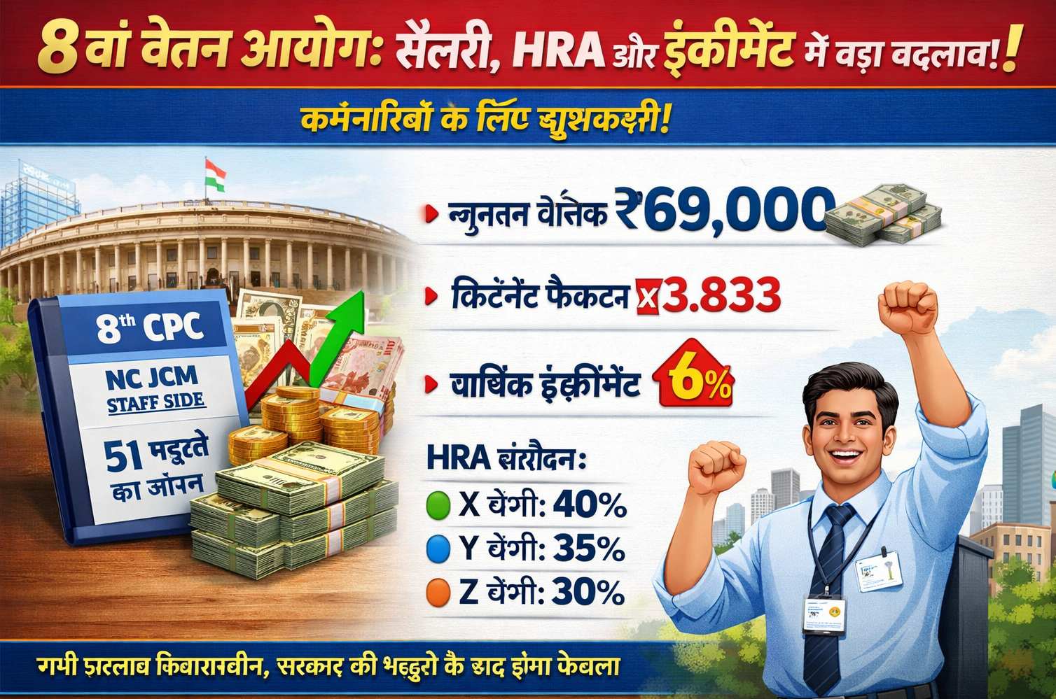 8वां वेतन आयोग: सैलरी, HRA और इंक्रीमेंट में बड़ा बदलाव! कर्मचारियों के लिए खुशखबरी?