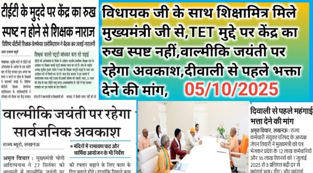 शिक्षामित्र मिले मुख्यमंत्री जी से,TET मुद्दे पर केंद्र का रुख स्पष्ट नहीं,वाल्मीकि जयंती पर रहेगा अवकाश,दीवाली से पहले भक्ता देने की मांग, देखें सूचनाएं विस्तार से