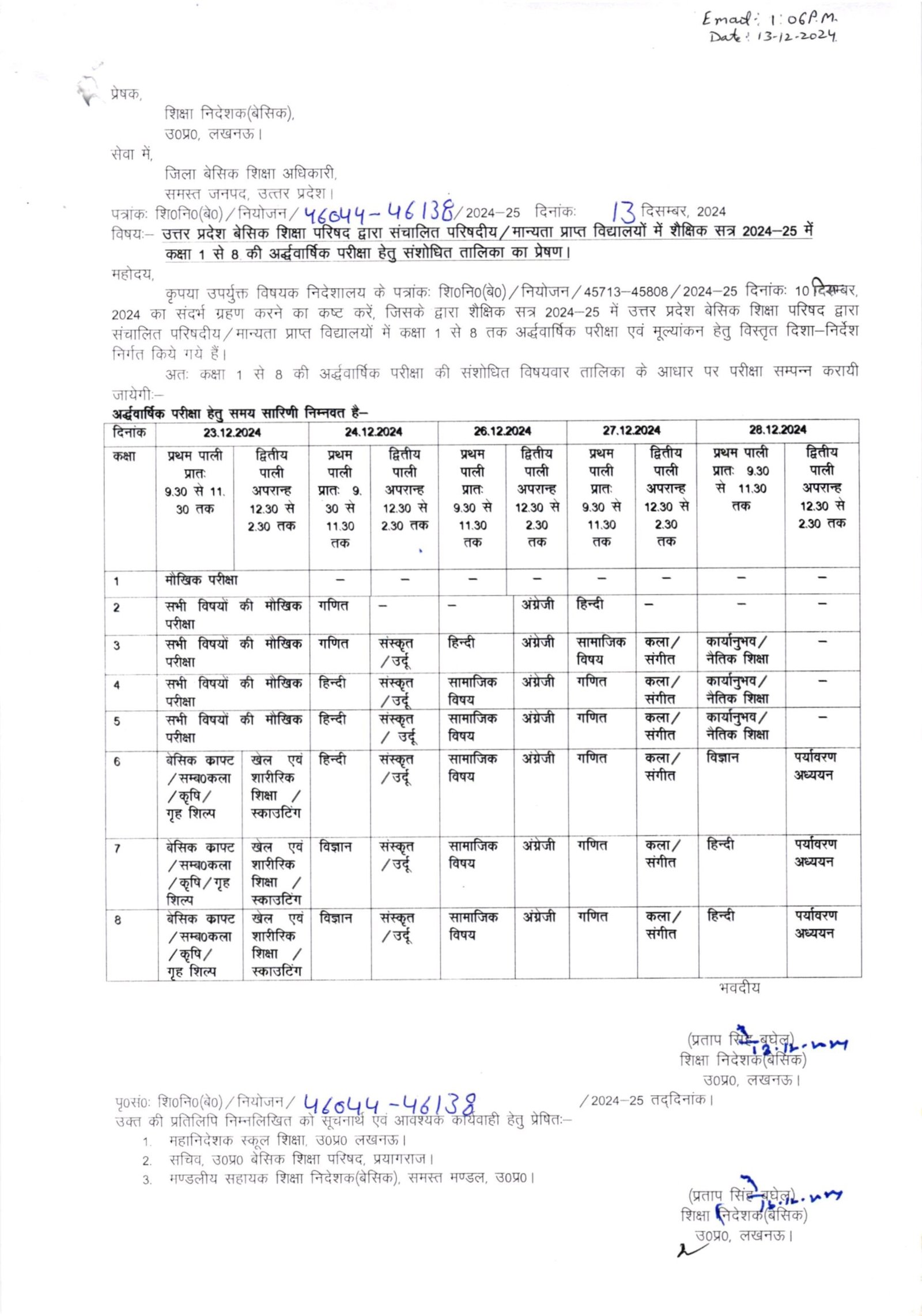 उत्तर प्रदेश बेसिक शिक्षा परिषद द्वारा संचालित परिषदीय / मान्यता प्राप्त विद्यालयों में शैक्षिक सत्र 2024-25 में द्वितीय सत्रीय परीक्षा का आयोजन कराये जाने के सम्बन्ध में।