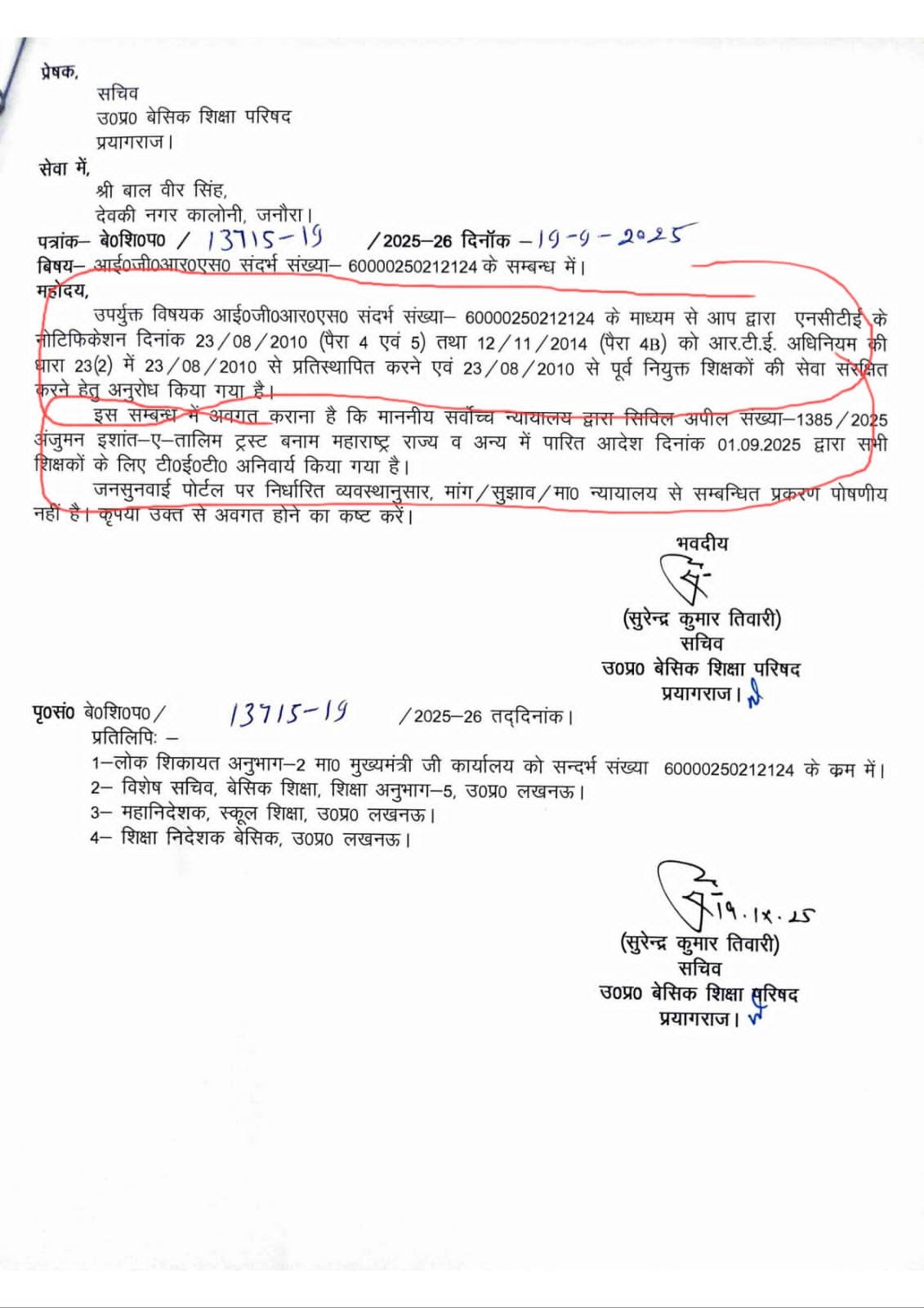 _कुछ लोग बता रहे थे उत्तर प्रदेश प्रभावित नही है। सचिव बेसिक शिक्षा परिषद ने इसकी पुष्टि कर दी।_ September 20, 2025 by Jaswant Singh _कुछ लोग बता रहे थे उत्तर प्रदेश प्रभावित नही है। सचिव बेसिक शिक्षा परिषद ने इसकी पुष्टि कर दी।_