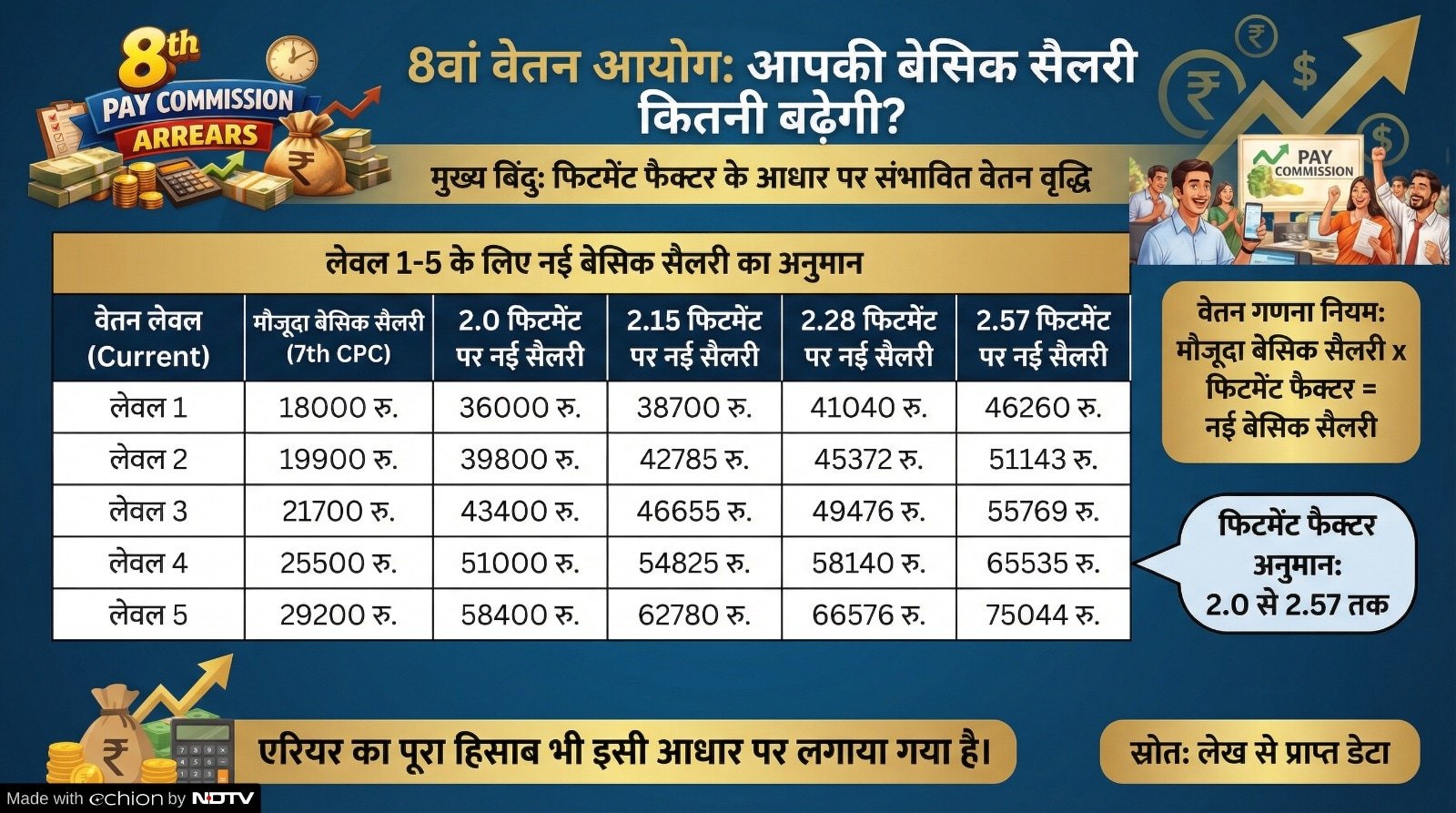 8वां वेतन आयोग: 2.57 फिटमेंट फैक्टर पर लाखों का एरियर तय! जानिए सैलरी कितनी बढ़ेगी
