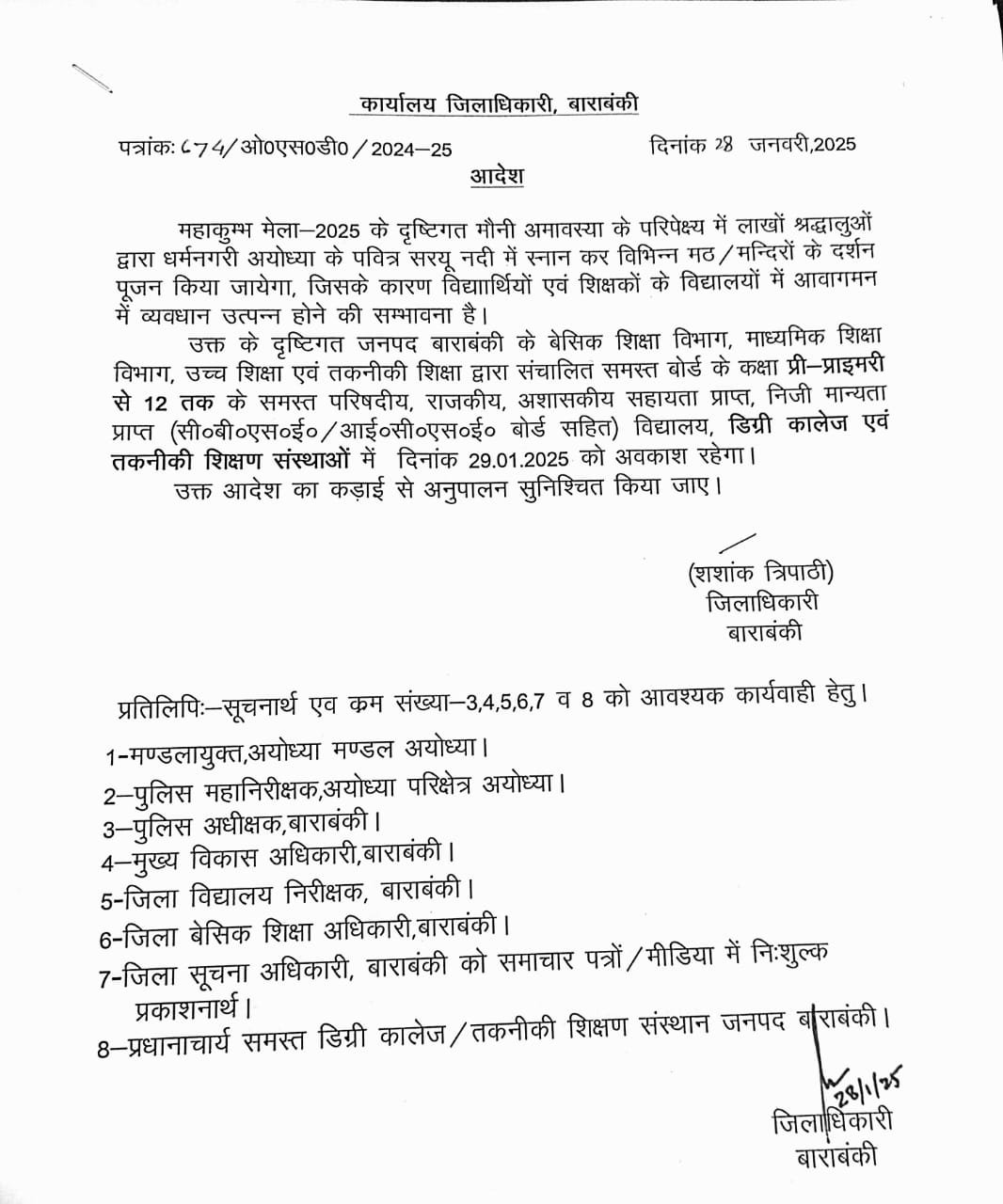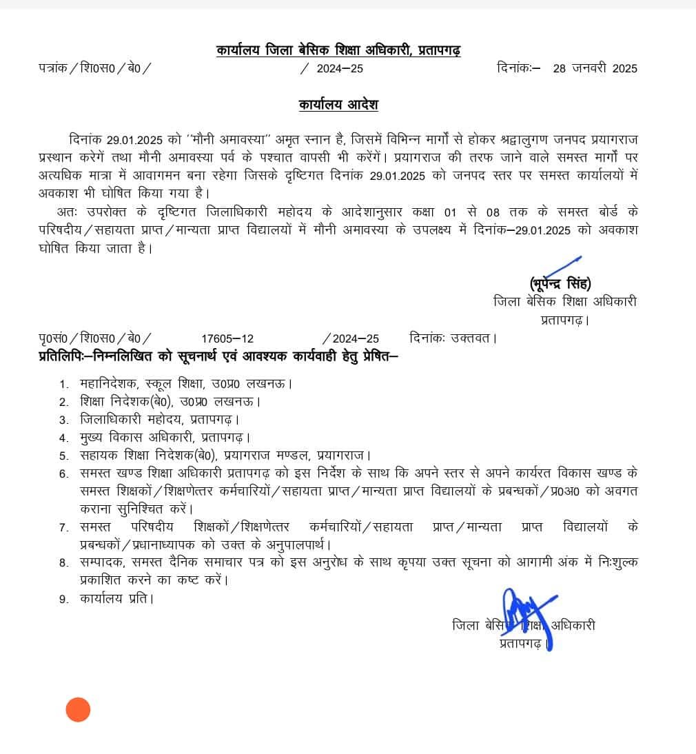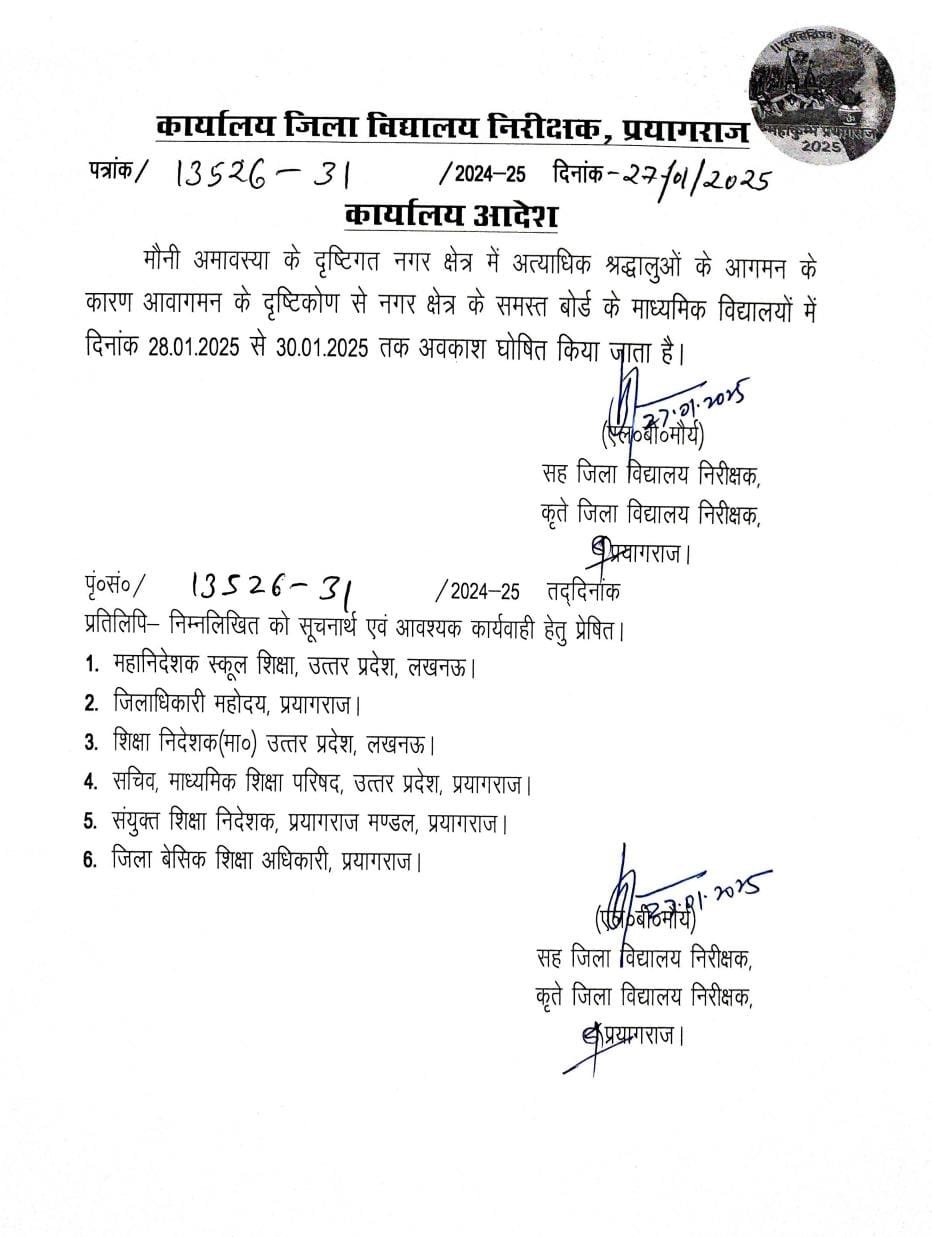 अब तक प्राप्त सूचना के आधार पर इन जिलों में मौनी अमावस्या के उपलक्ष्य में रहेगा अवकाश