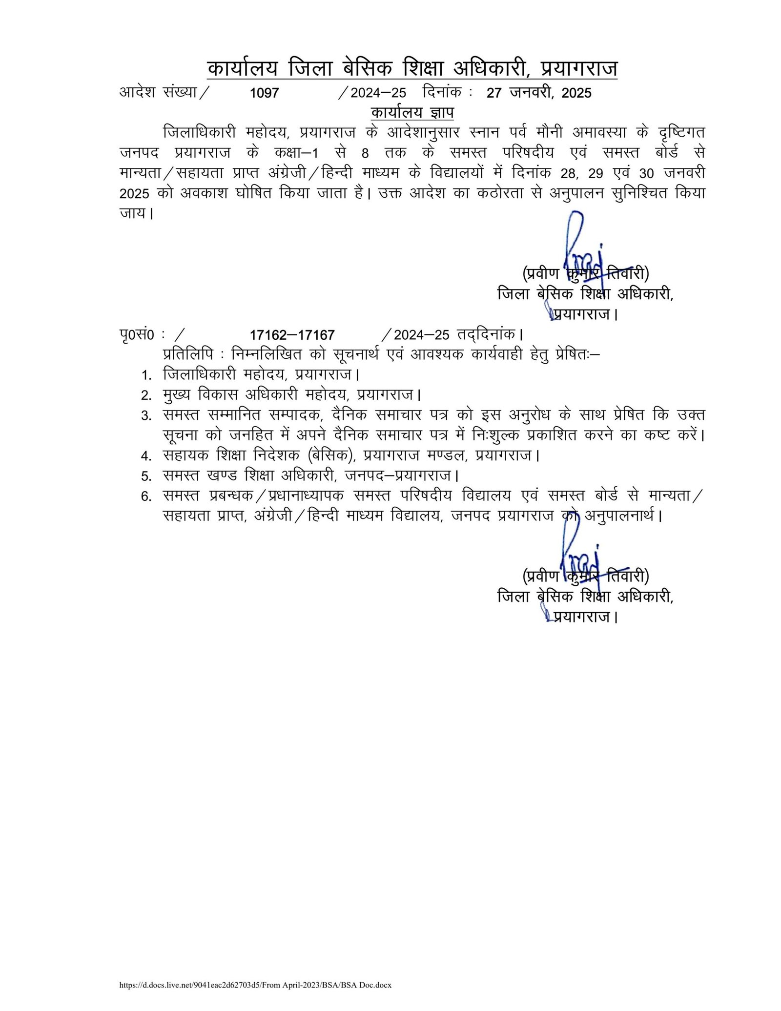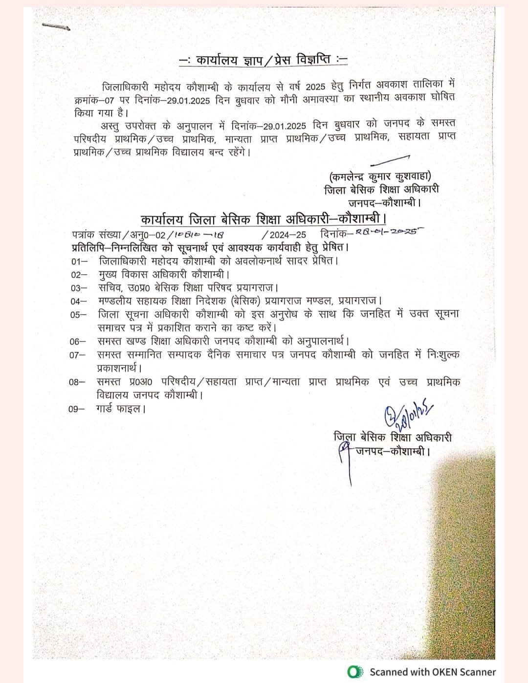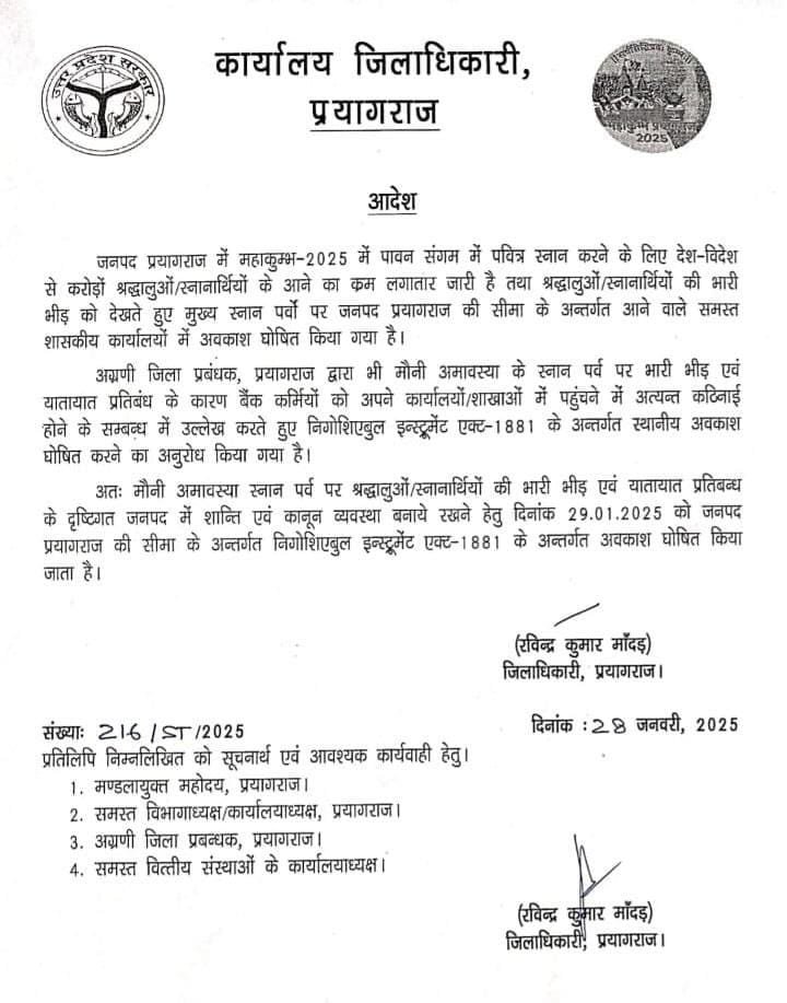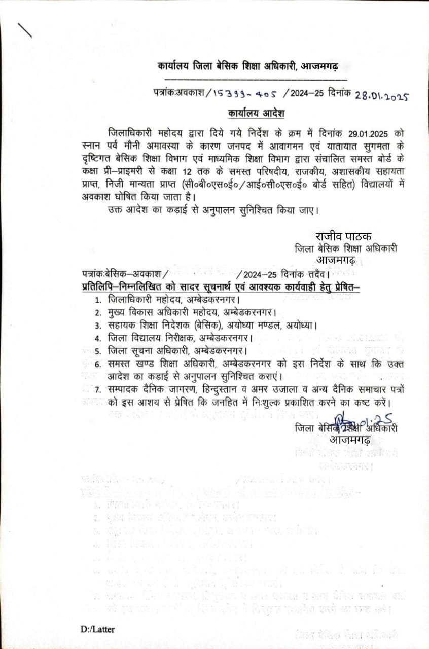अब तक प्राप्त सूचना के आधार पर इन जिलों में मौनी अमावस्या के उपलक्ष्य में रहेगा अवकाश