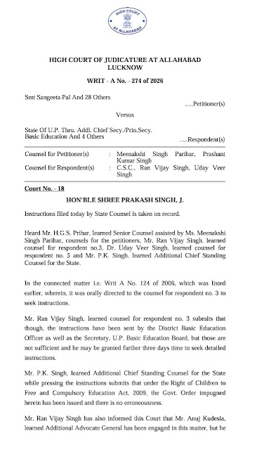 समायोजन 3.0 Smt Sangeeta Pal and 28 others Versus State of U.P. and 4 others के सम्बन्ध में आज की सुनवाई का आदेश