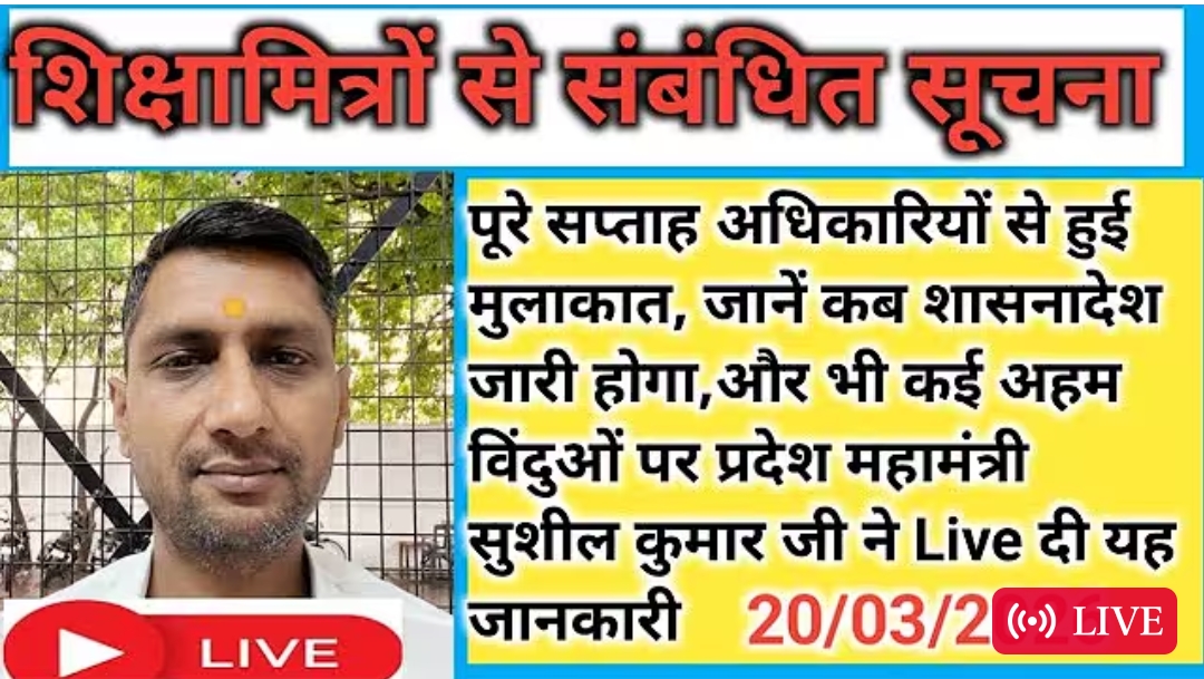 पूरे सप्ताह अधिकारियों से हुई मुलाकात, जानें कब शासनादेश जारी होगा,और भी कई अहम विंदुओं पर प्रदेश महामंत्री सुशील कुमार जी ने Live दी यह जानकारी