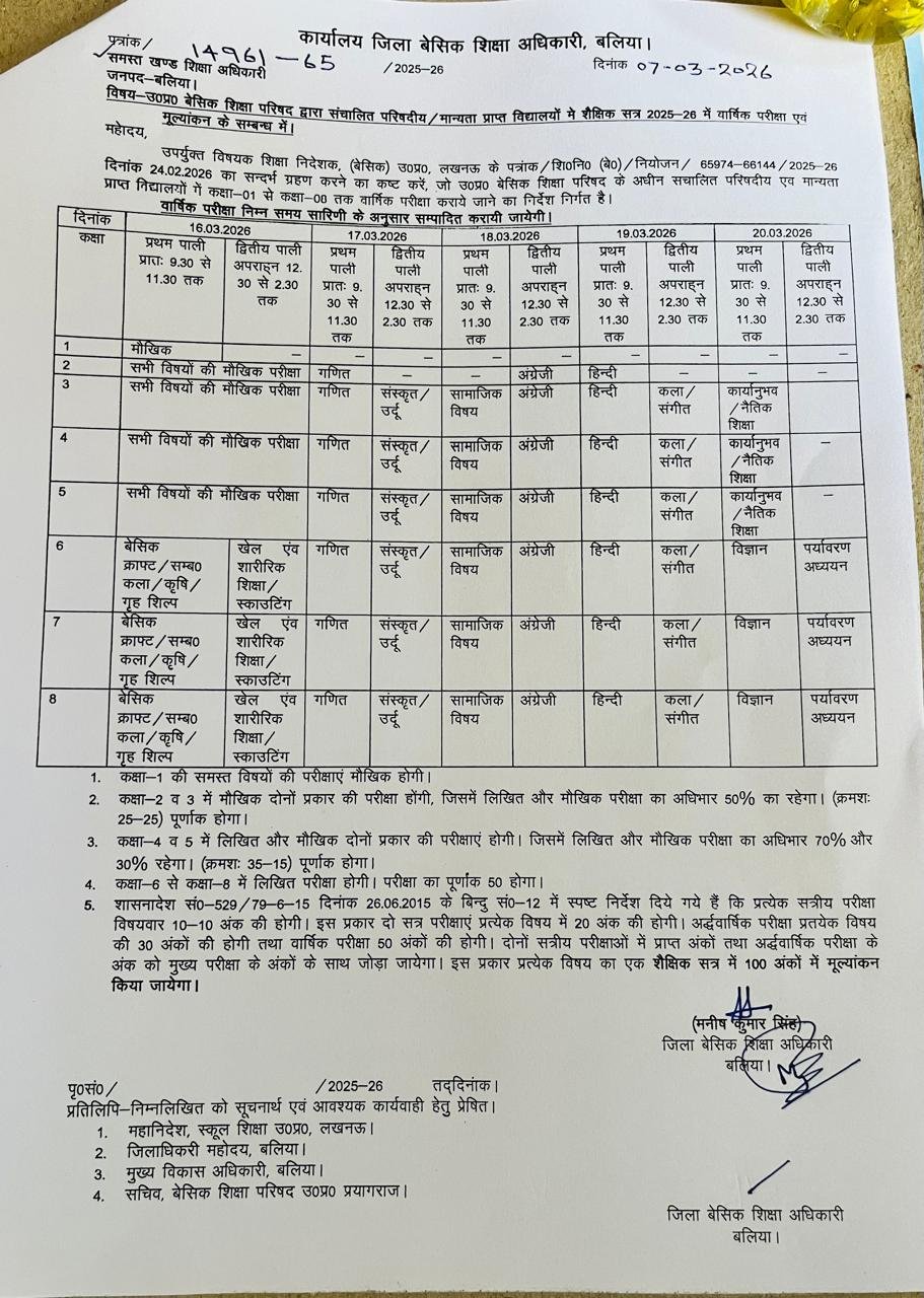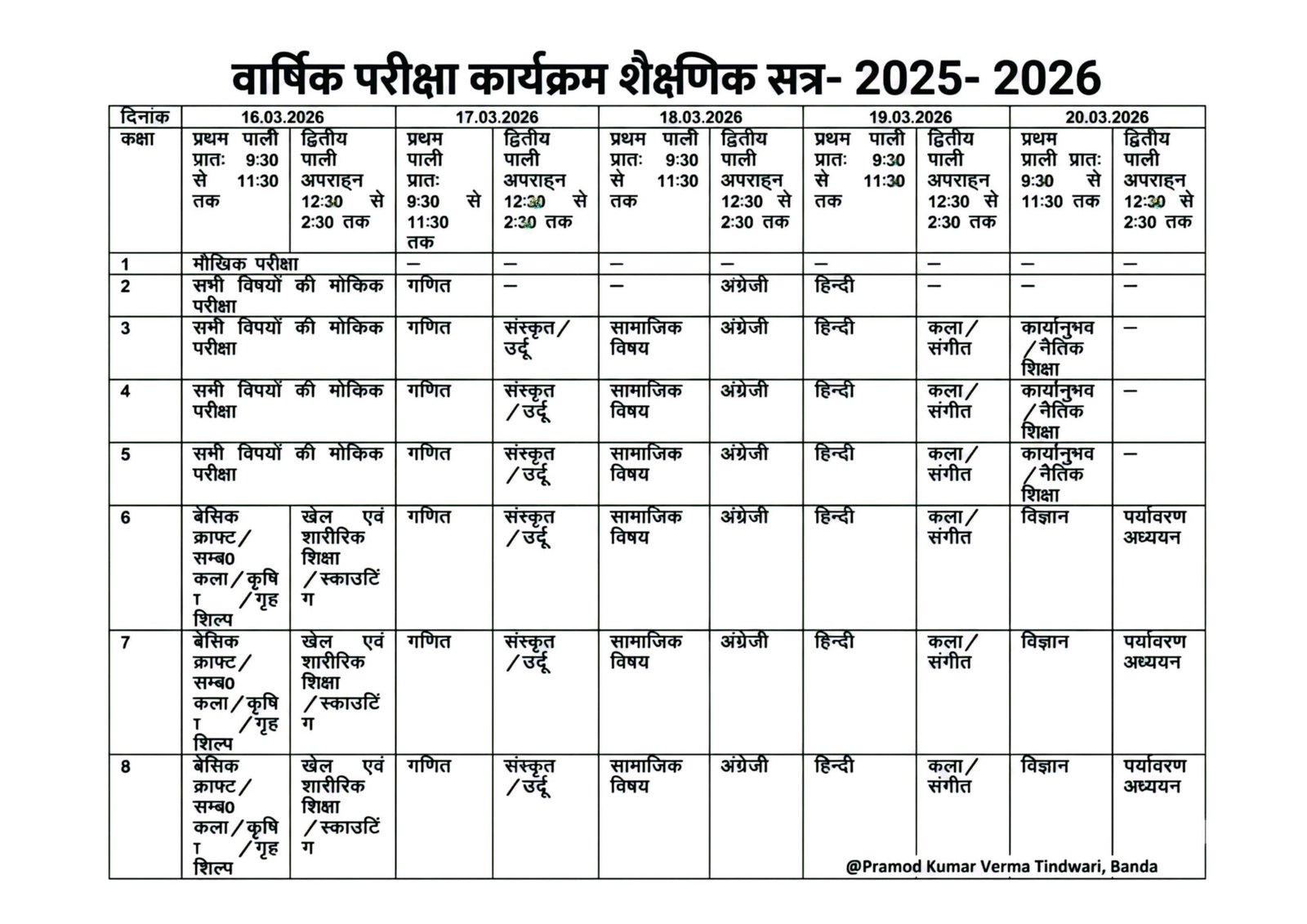 Annual Exam Time Table:- वार्षिक परीक्षा समय सारणी March 8, 2026 by Ravi Singh Annual Exam Time Table:- वार्षिक परीक्षा समय सारणी