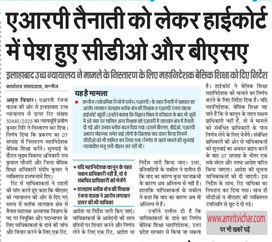 ARP तैनाती को लेकर हाईकोर्ट में पेश हुए CDO और BSA October 22, 2025 by Jaswant Singh ARP तैनाती को लेकर हाईकोर्ट में पेश हुए CDO और BSA
