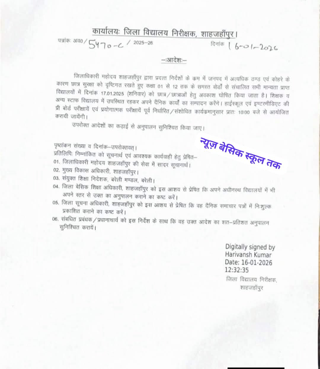 अवकाश सूचना: अत्यधिक शीतलहर और गलन के कारण इन जनपदों में हुआ अवकाश