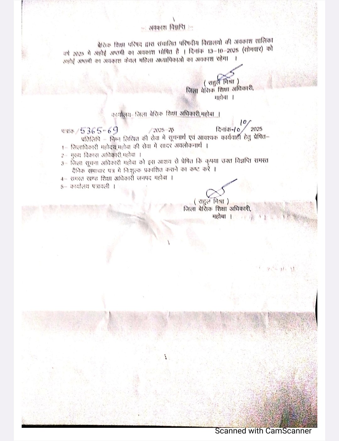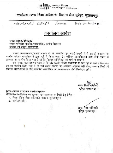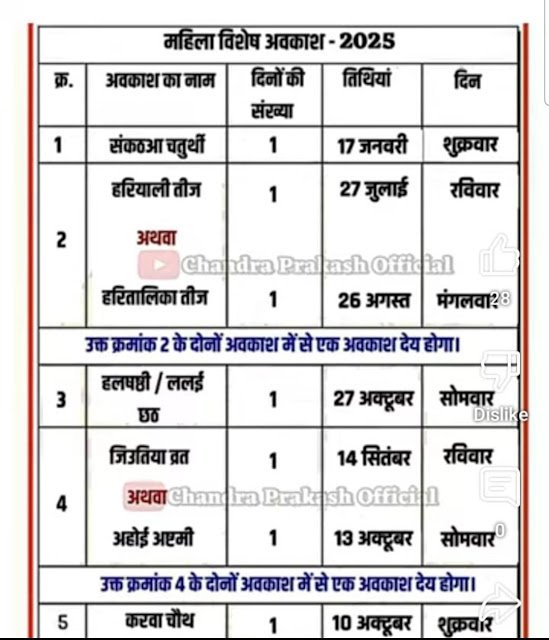 अवकाश तालिका के अनुसार, अहोई अष्टमी के साथ ज्युतिया व्रत की छुट्टी है, देखें