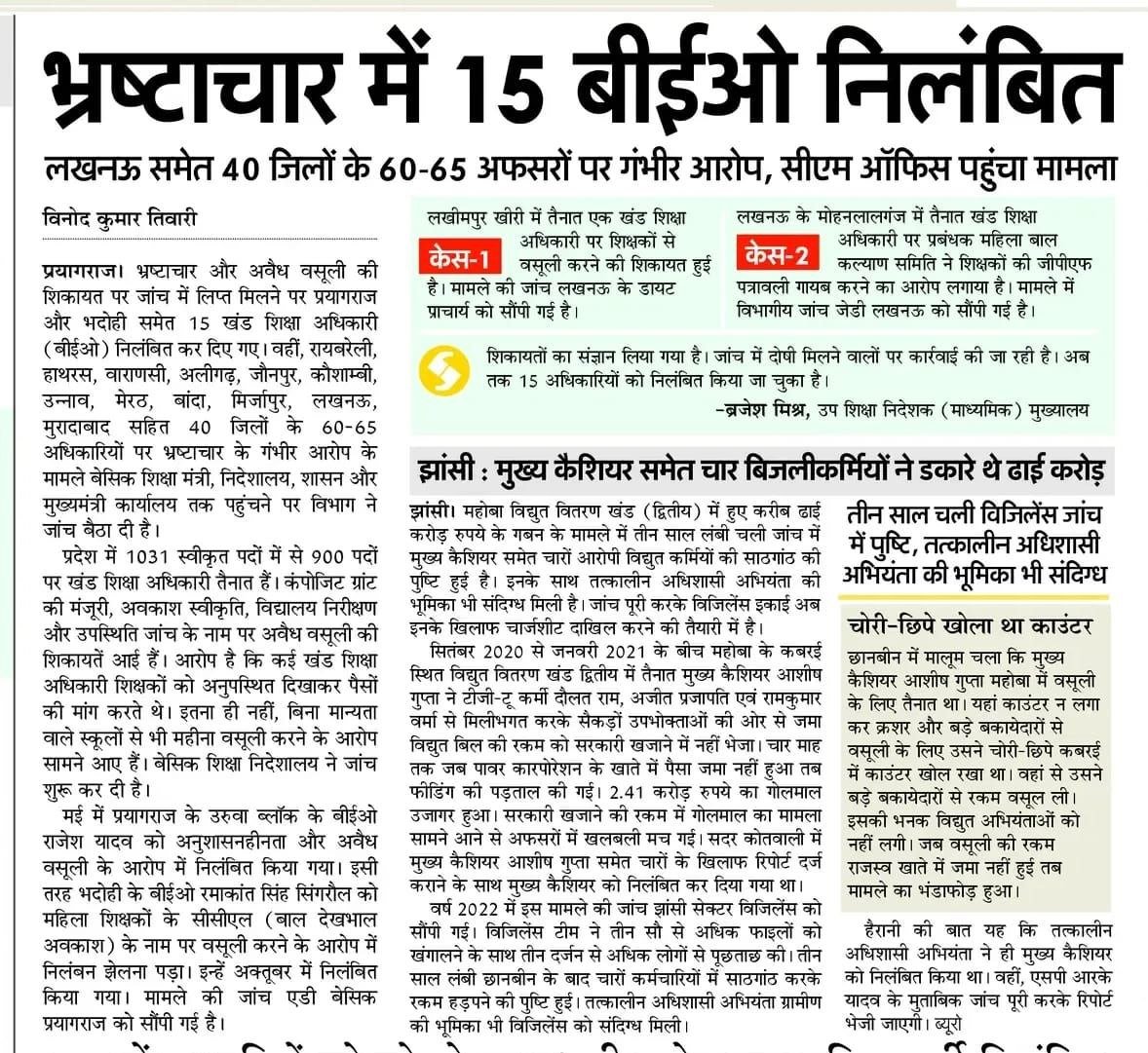 बड़ी खबर: 15 खंड शिक्षा अधिकारी निलंबित, पढ़िए क्या है पूरा मामला October 26, 2025 by Jaswant Singh बड़ी खबर: 15 खंड शिक्षा अधिकारी निलंबित, पढ़िए क्या है पूरा मामला