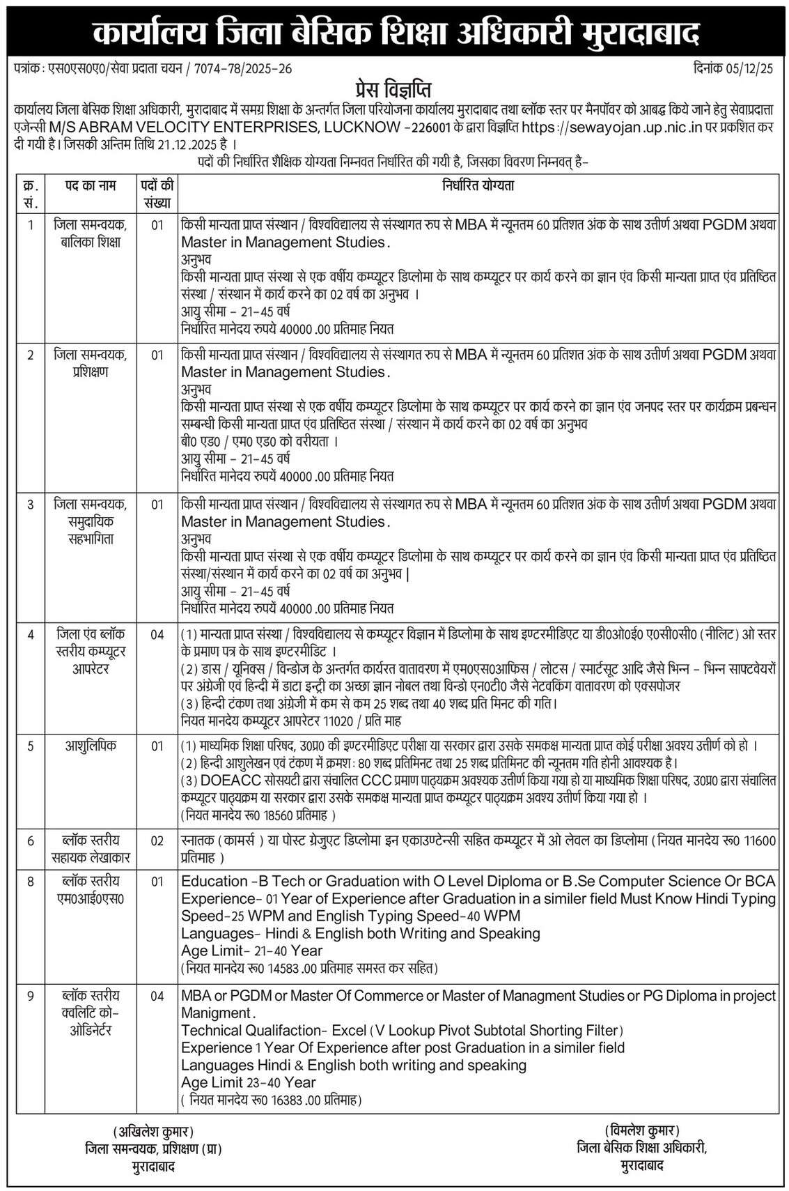 बेसिक में निकली संविदा की नौकरियां, वेतन 40 हजार तक प्रतिमाह