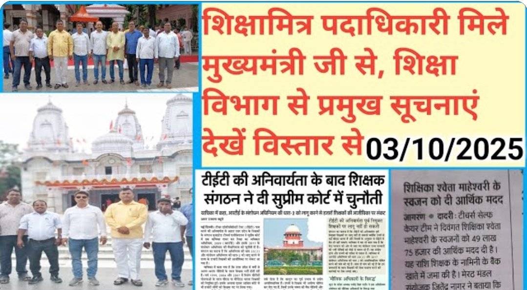 Basic Shiksha news:- शिक्षामित्र पदाधिकारी मिले मुख्यमंत्री जी से, शिक्षामित्रों ने की बैठक, शिक्षा विभाग से प्रमुख सूचनाएं