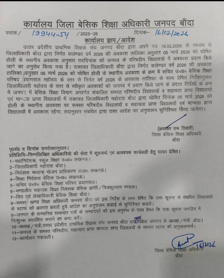 बड़ी खबर: 5 मार्च को उत्तर प्रदेश के इस जिले में होली का रहेगा स्थानीय अवकाश
