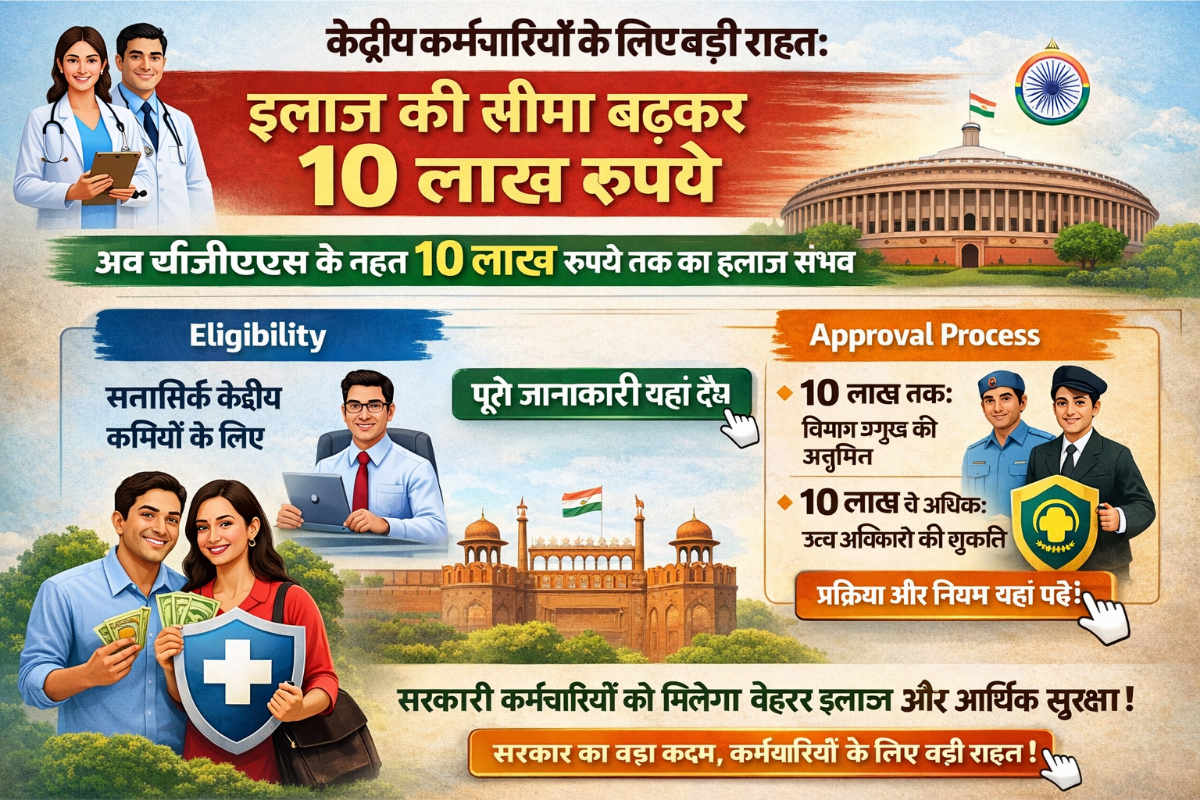 केंद्रीय कर्मचारियों को बड़ी राहत: (CGHS) इलाज की सीमा बढ़कर 10 लाख रुपये