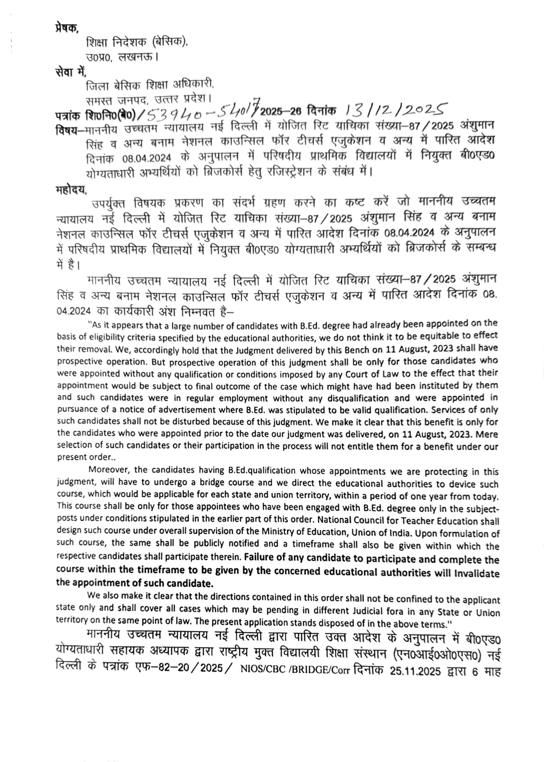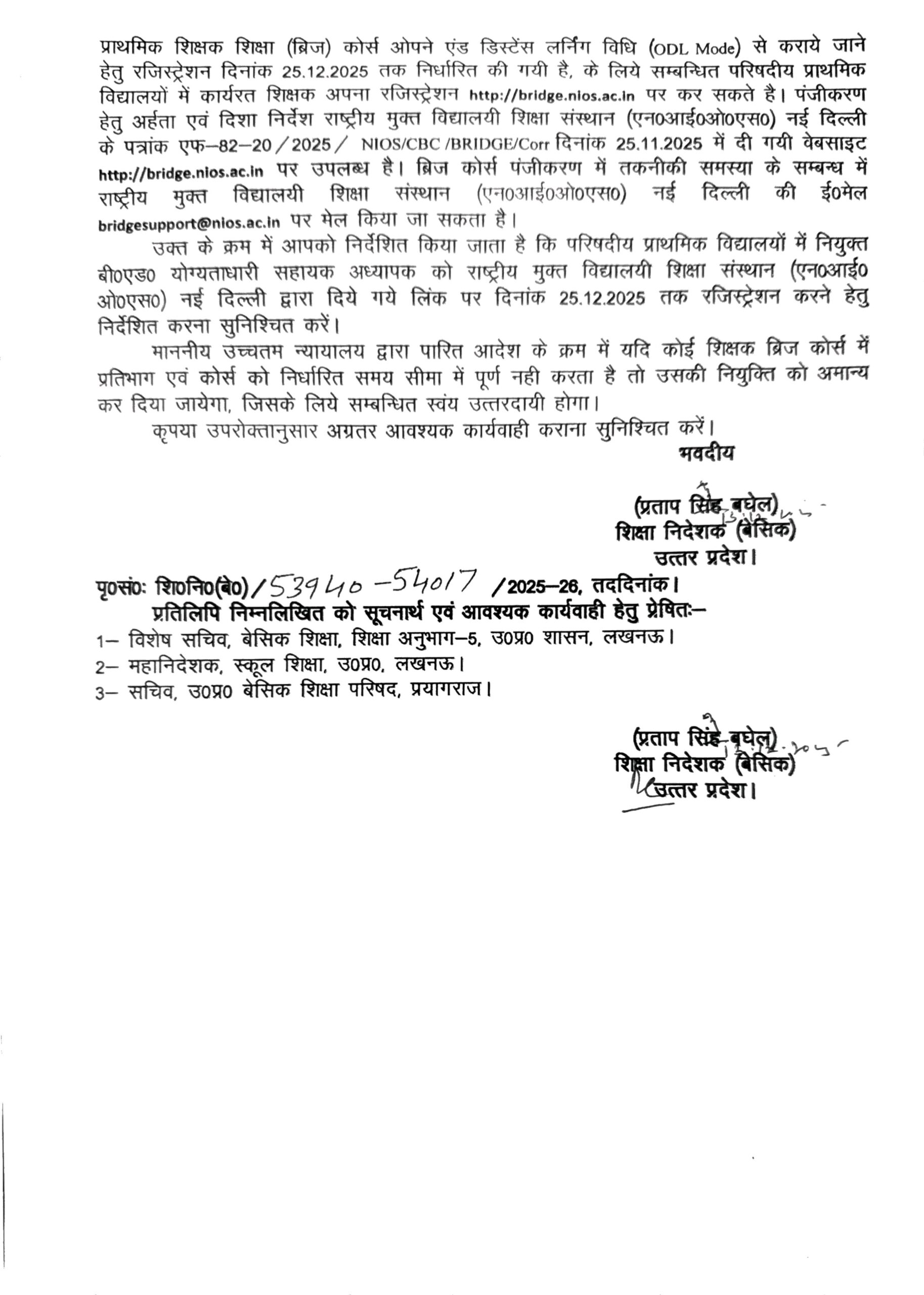 ब्रिज कोर्स सम्बन्धी आदेश जारी, देखें शासनादेश व एनआईओएस की गाइडलाइन