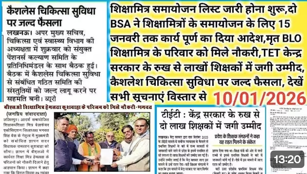 BSA ने शिक्षामित्रों के 15 जनवरी तक कार्य पूर्ण करने का आदेश, लाखों शिक्षकों में जगी उम्मीद, कैशलेश चिकित्सा सुविधा पर जल्द फैसला, देखें