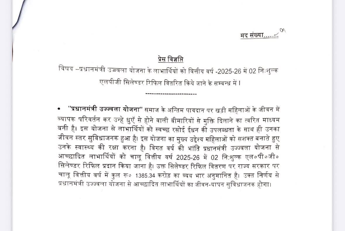 दीपावली पर निःशुल्क सिलेंडर देने का प्रस्ताव मंजूर!!