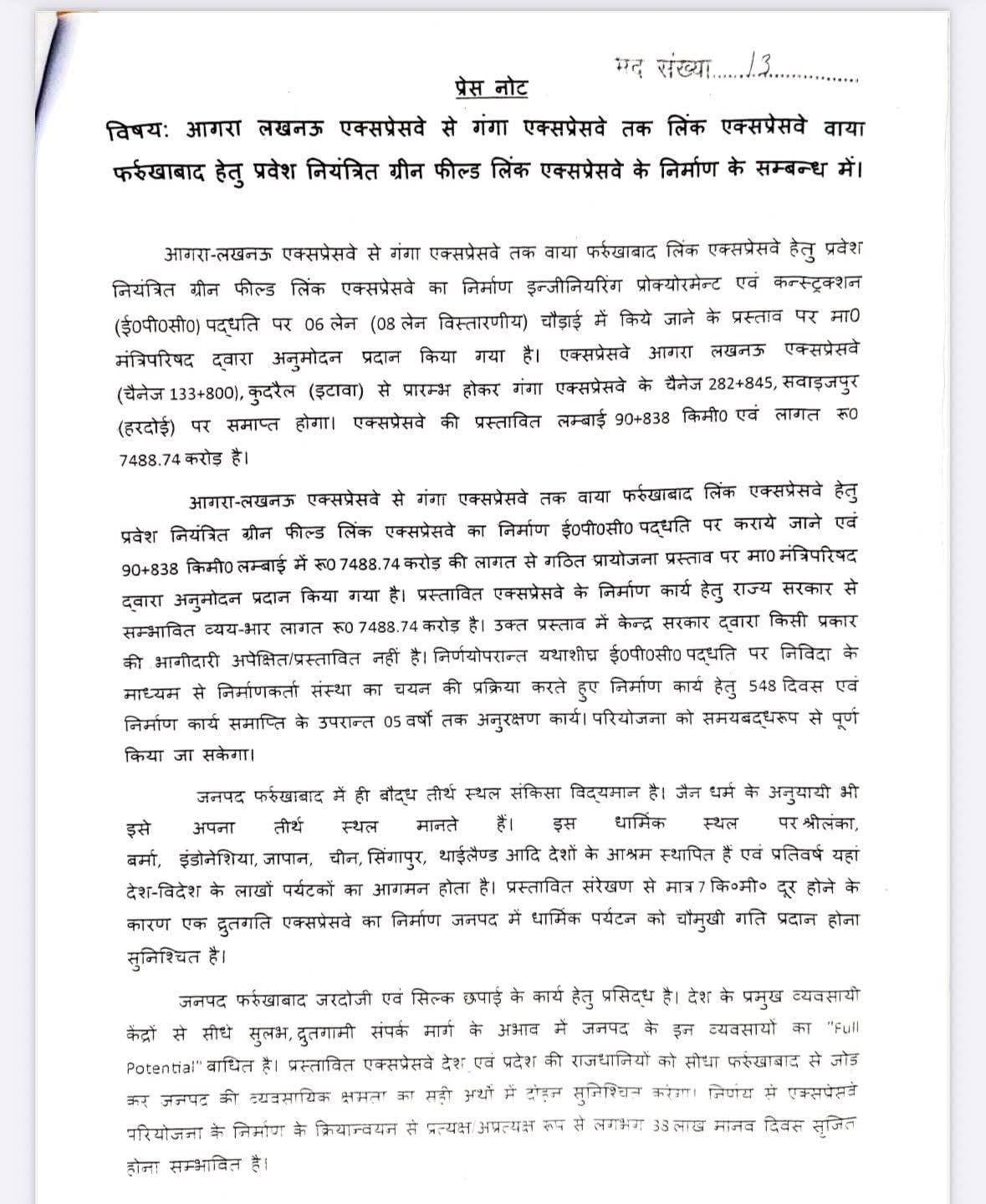 ग्रीनफील्ड लिंक एक्सप्रेस वे प्रस्ताव को मंजूरी मिली!!