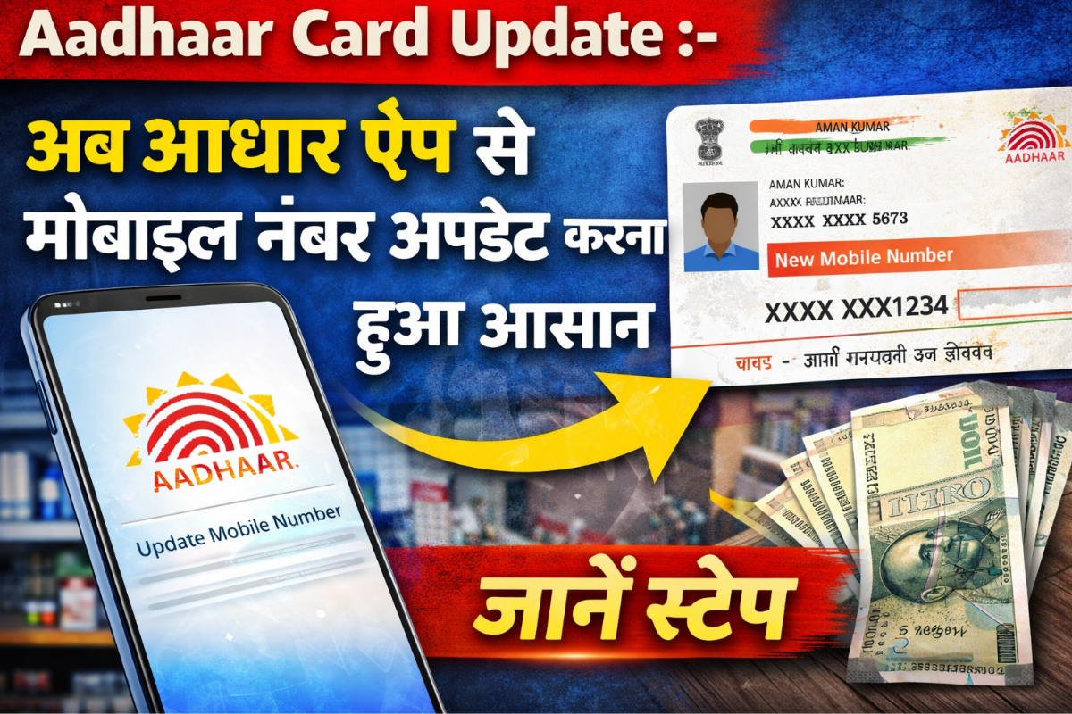 Adhar card update:- अब आधार ऐप से मोबाइल नंबर अपडेट करना हुआ बेहद आसान जानें स्टेप