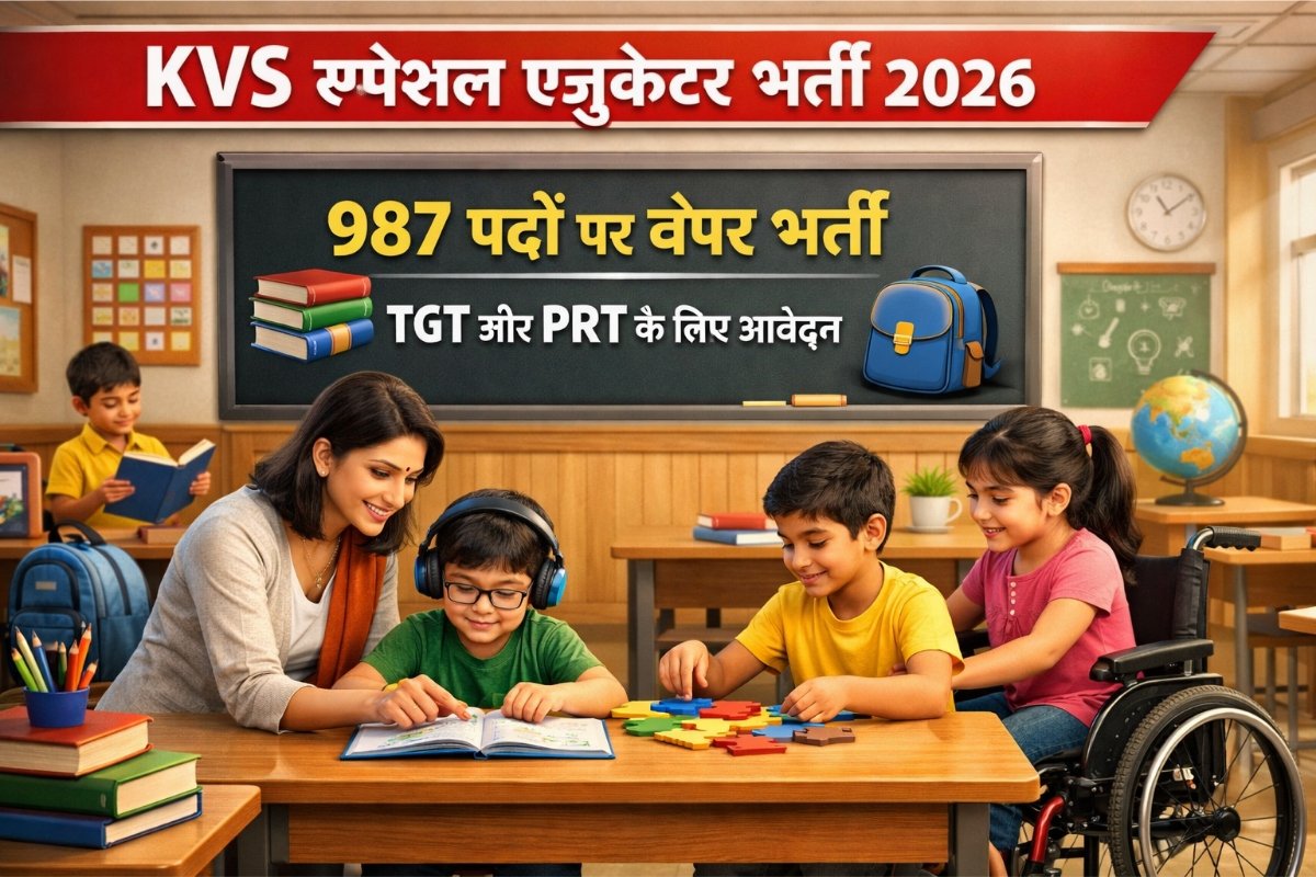 KVS Recruitment 2026: 987 पदों पर बंपर भर्ती, योग्यता से लेकर चयन प्रक्रिया तक पूरी जानकारी जो उम्मीदवार विशेष बच्चों की शिक्षा के क्षेत्र में करियर बनाना चाहते हैं, उनके लिए यह बड़ी खबर है। केंद्रीय विद्यालय संगठन (KVS) ने सत्र 2026–27 के लिए स्पेशल एजुकेटर भर्ती का आधिकारिक ऐलान किया है। इस भर्ती के … Read more