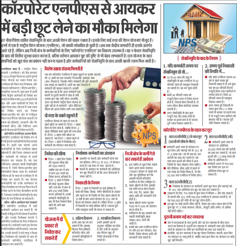 काॅरपोरेट एनपीएस से आयकर में बड़ी छूट लेने का मौका मिलेगा हर नौकरीपेशा व्यक्ति सेवानिवृत्ति के बाद अच्छी पेंशन की …