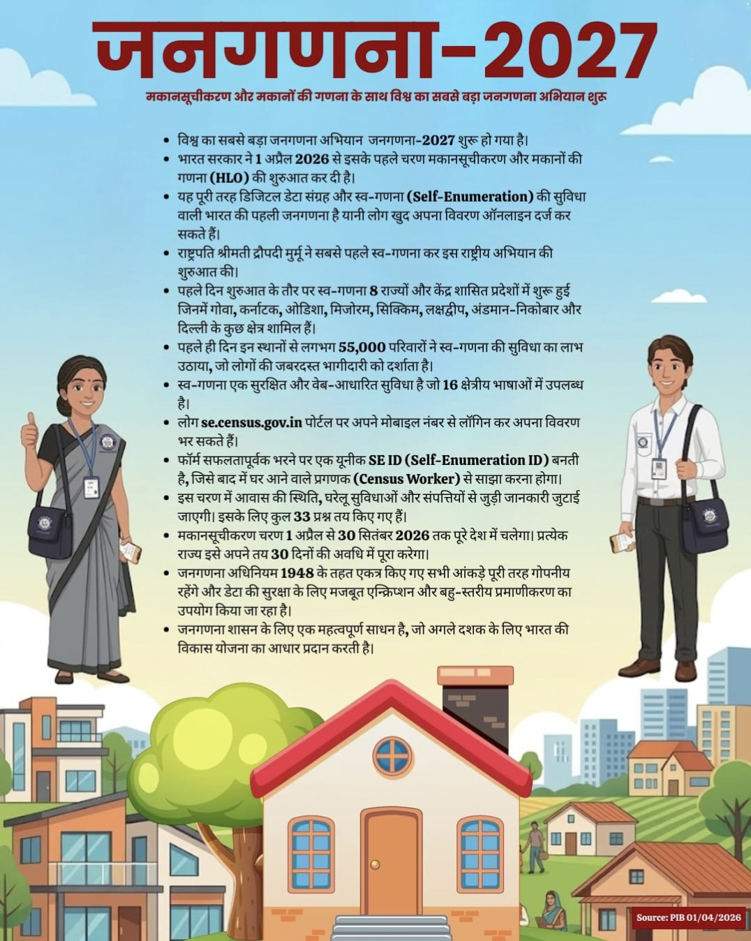 जनगणना-2027 : मकानसूचीकरण और मकानों की गणना के साथ विश्व का सबसे बड़ा जनगणना अभियान शुरू