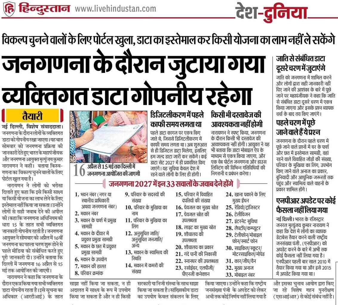 जनगणना 2027 में निजी डाटा गोपनीय रहेगा, इन 33 सवालों के जवाब देने होंगे