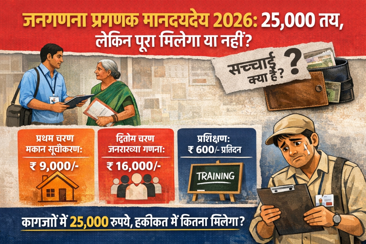 जनगणना प्रगणक व पर्यवेक्षक मानदेय 2026: 25,000 रुपये, असल में मिलेगा कितना? जानें