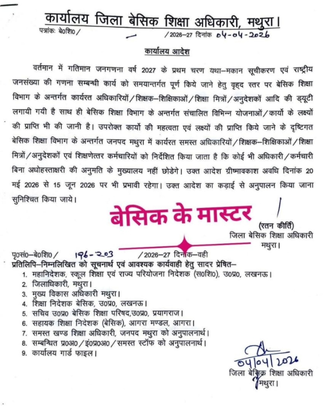 जनगणना कार्यों के दृष्टिगत ग्रीष्मावकाश अवकाश में भी कोई जिला मुख्यालय नहीं छोड़ेगा…