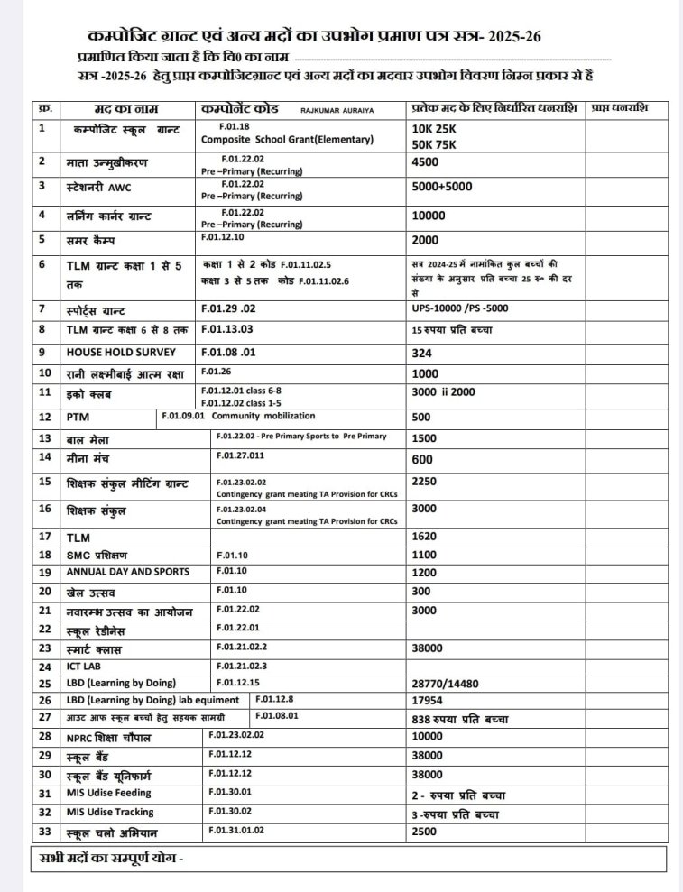 कम्पोजिट ग्रांट एवं अन्य मदों का उपयोग प्रमाण पत्र सत्र- 2025-26 March 28, 2026 by Ravi Singh कम्पोजिट ग्रांट एवं अन्य मदों का उपयोग प्रमाण पत्र सत्र- 2025-26