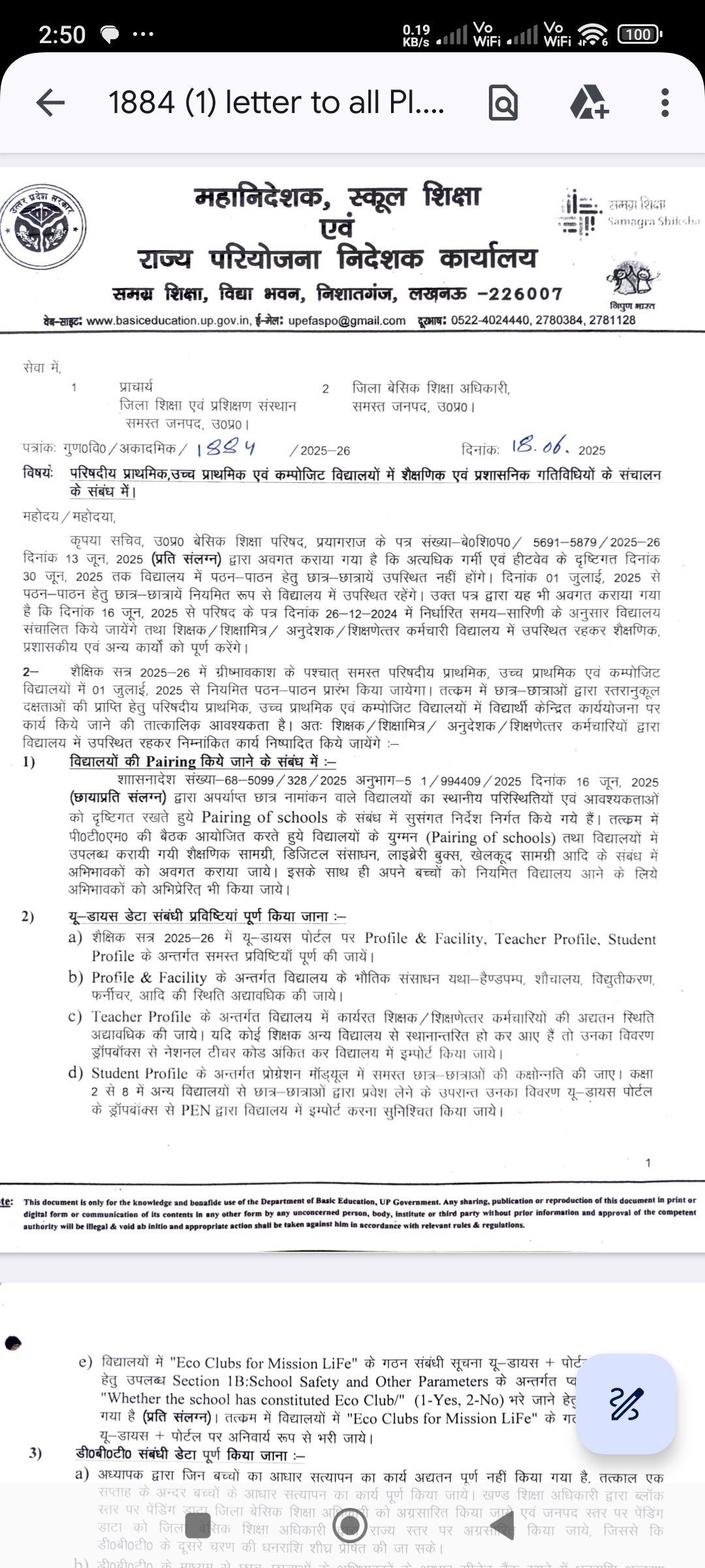 परिषदीय प्राथमिक, उच्च प्राथमिक एवं कम्पोजिट विद्यालयों में शैक्षणिक एवं प्रशासनिक गतिविधियों के संचालन के संबंध में।