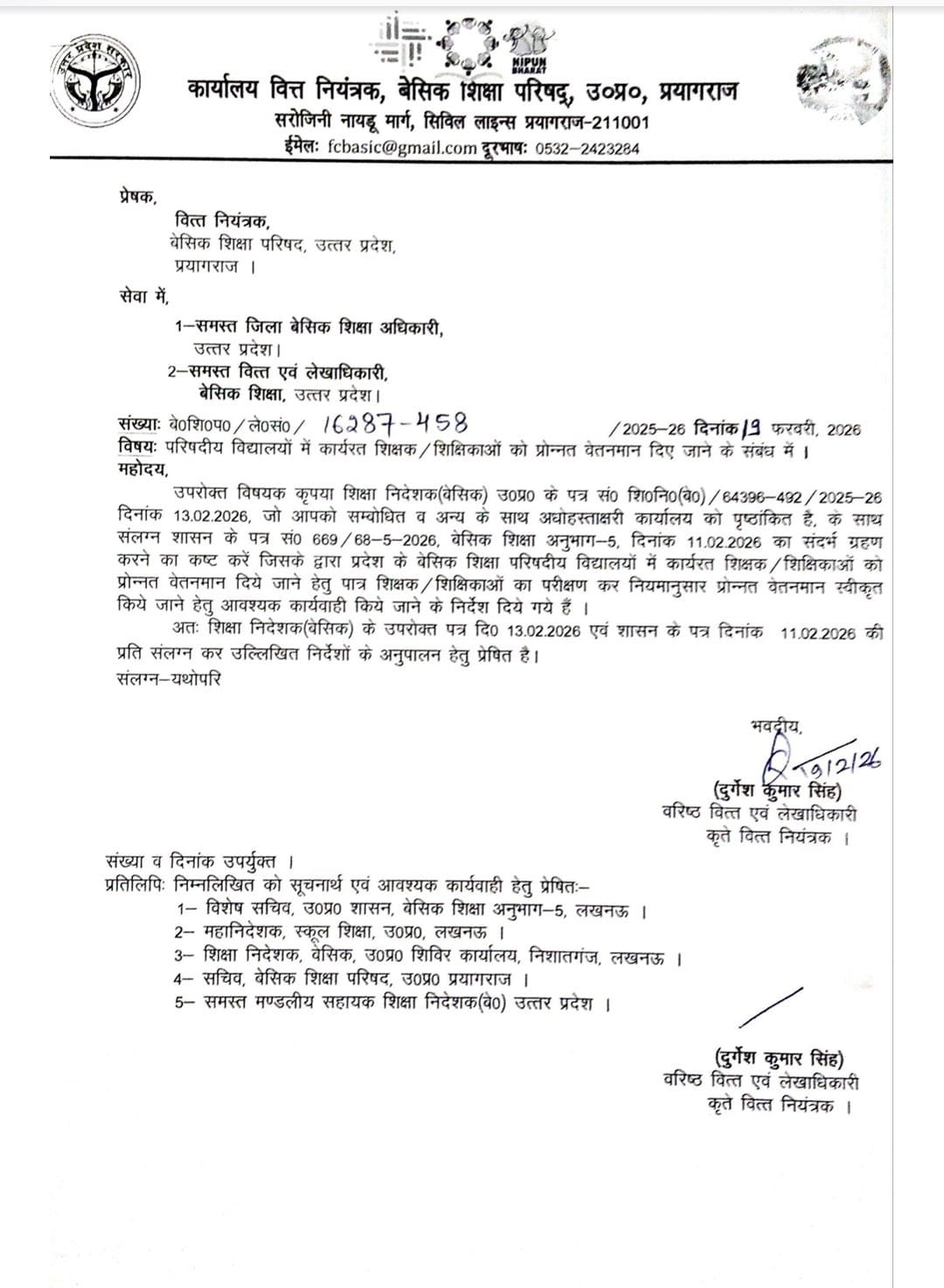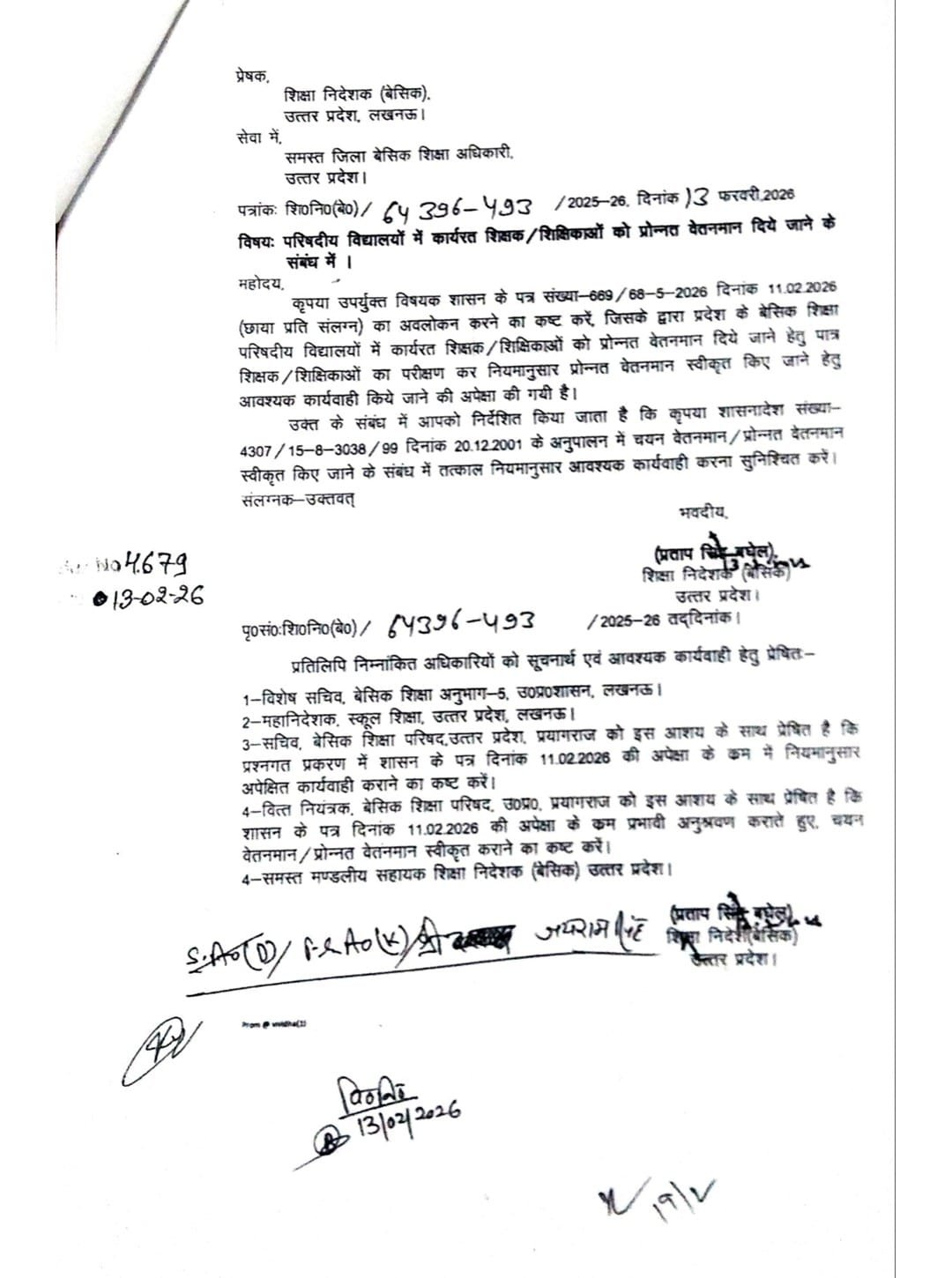 परिषदीय विद्यालयों में कार्यरत शिक्षक / शिक्षिकाओं को प्रोन्नत वेतनमान दिए जाने के संबंध में । February 20, 2026 by Ravi Singh परिषदीय विद्यालयों में कार्यरत शिक्षक / शिक्षिकाओं को प्रोन्नत वेतनमान दिए जाने के संबंध में ।
