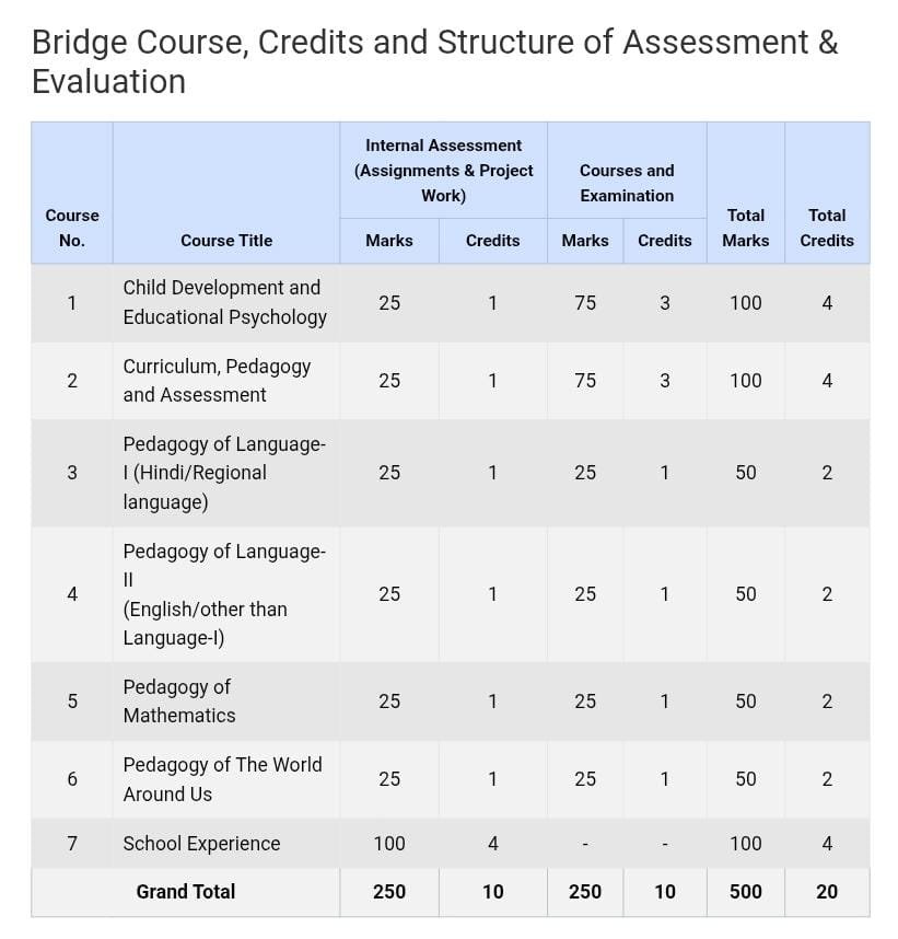 ब्रिज कोर्स, क्रेडिट एंड स्ट्रक्चर ऑफ़ असेसमेंट & Evaluation*