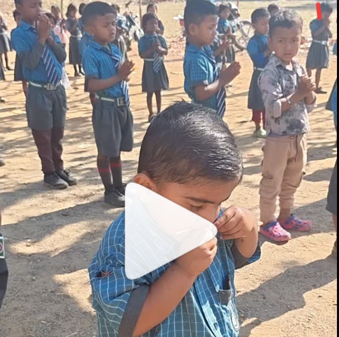 वायरल वीडियो एक स्कूल असेंबली का है। सुबह की प्रार्थना चल रही है। सभी बच्चे आंखें बंद करके पूरी श्रद्धा से प्रार्थना कर रहे हैं। लेकिन इसी बीच एक छोटा बच्चा चुपचाप अपने ही अंदाज में बिजी नजर आता है।