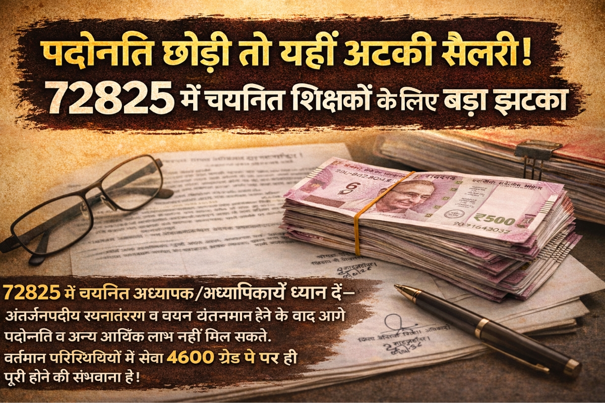 72825 में चयनित वे सभी अध्यापक/अध्यापिकाएँ, जिन्होंने अंतर्जनपदीय स्थानांतरण प्राप्त कर लिया है तथा चयन वेतनमान का लाभ भी ले लिया है, वे आगे की सभी योजनाओं जैसे— पदोन्नति, चयन वेतनमान आदि आर्थिक लाभों से वंचित हो सकते हैं।