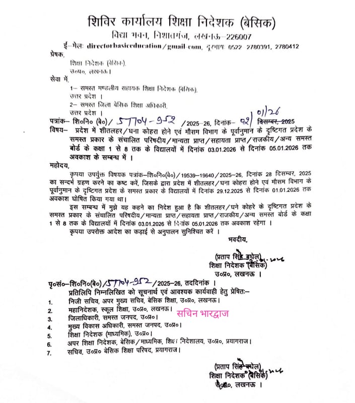 शिक्षा निदेशक बेसिक शिक्षा का अवकाश के संबंध में आदेश