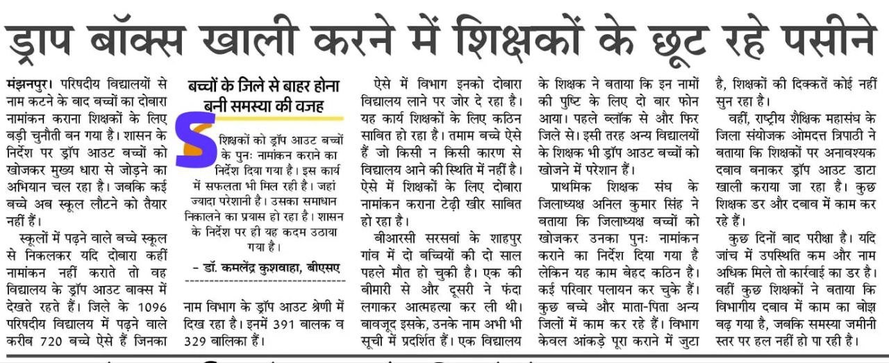 ड्राप बाक्स खाली करने में शिक्षकों के छूट रहे पसीने November 1, 2025 by Jaswant Singh ड्राप बाक्स खाली करने में शिक्षकों के छूट रहे पसीने