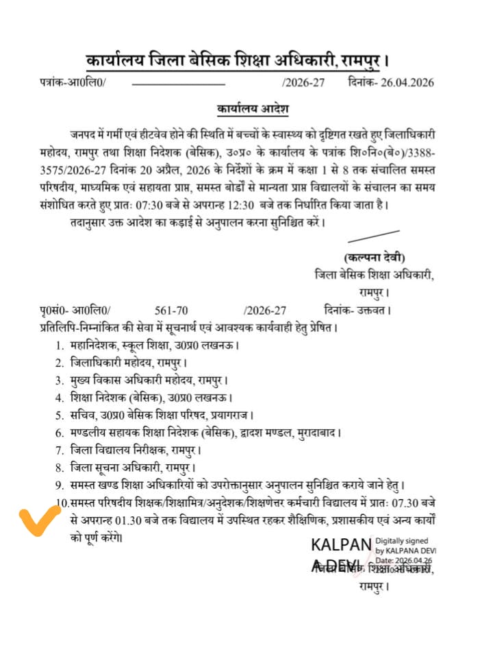 जिला प्रशासन और बेसिक शिक्षा अधिकारियों को निर्देश दिए गए हैं कि वे अपने-अपने जिलों में इस आदेश का सख्ती से पालन सुनिश्चित कराएं। साथ ही शिक्षकों और स्टाफ को निर्धारित समय तक विद्यालय में उपस्थित रहने के निर्देश भी दिए गए हैं।