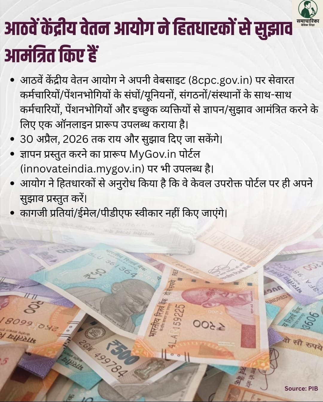 आठवें केंद्रीय वेतन आयोग ने हितधारकों से सुझाव आमंत्रित किए हैं