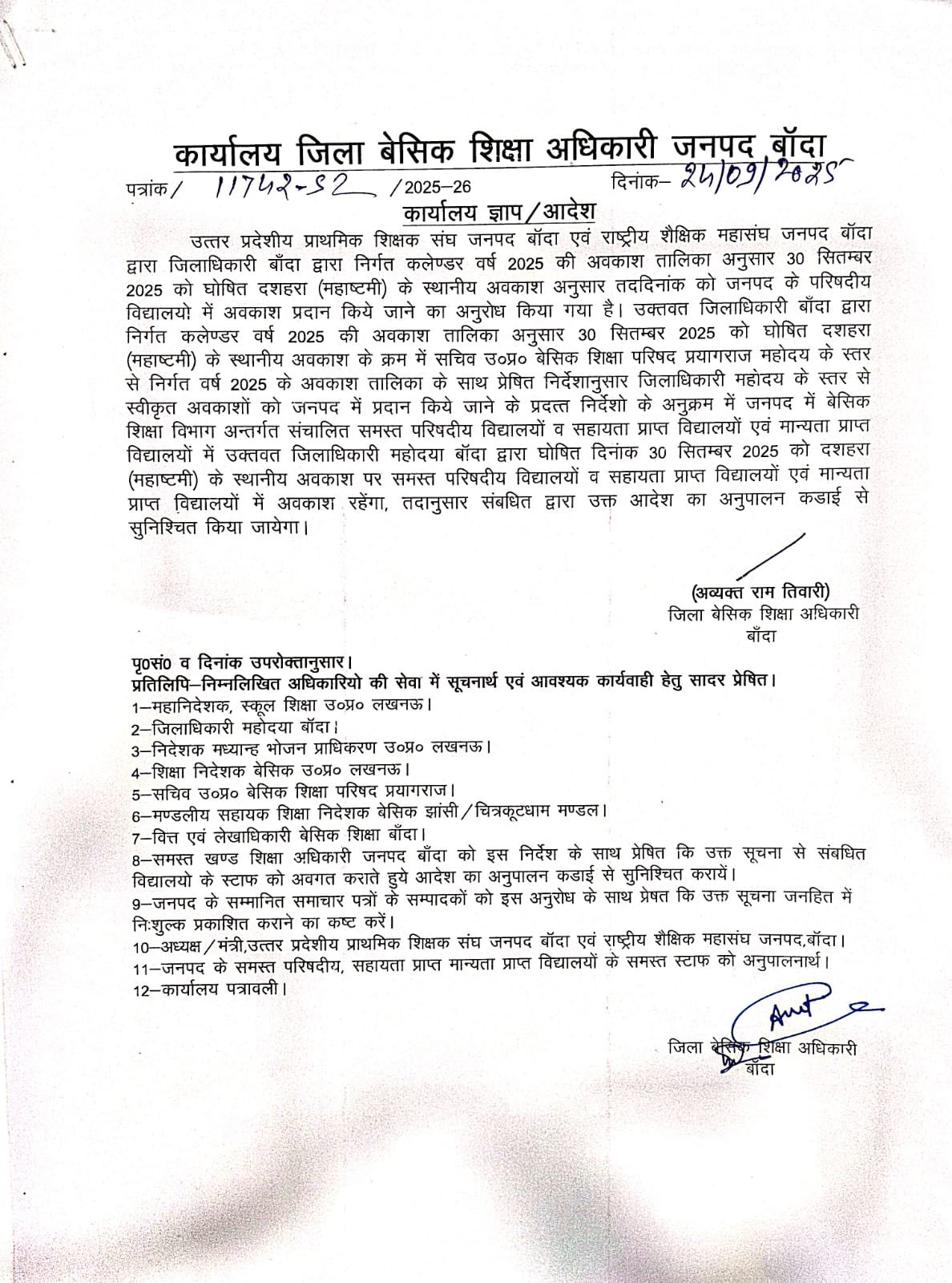 बड़ी खबर: एक और जिले में 30 सितंबर का अवकाश हुआ घोषित, देखिए आदेश