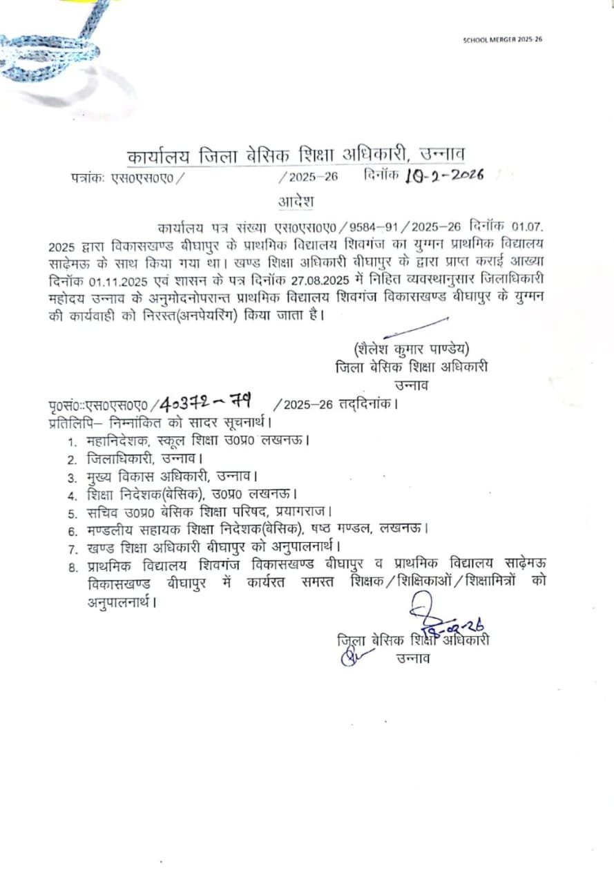 प्राथमिक विद्यालय का युग्मन निरस्त, BSA का आधिकारिक आदेश जारी