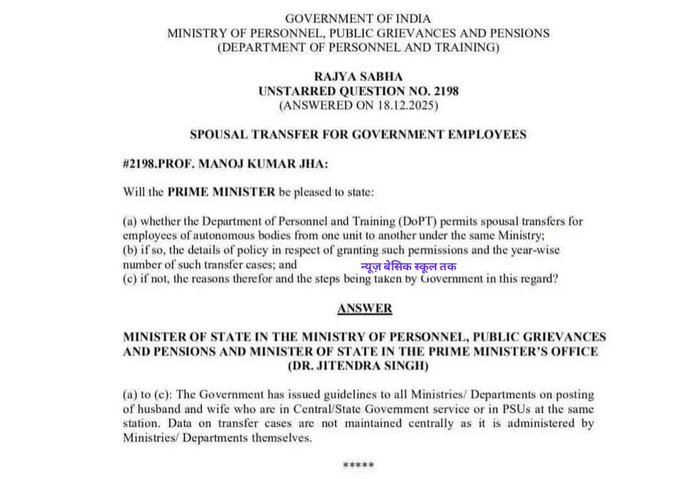 सरकारी कर्मचारियों के लिए बड़ी राहत , पति-पत्नी को एक ही स्टेशन पर पोस्टिंग देने को लेकर सरकार का साफ़ संदेश सामने आया है।, देखें January 18, 2026 by Ravi Singh सरकारी कर्मचारियों के लिए बड़ी राहत , पति-पत्नी को एक ही स्टेशन पर पोस्टिंग देने को लेकर सरकार का साफ़ संदेश सामने आया है।, देखें