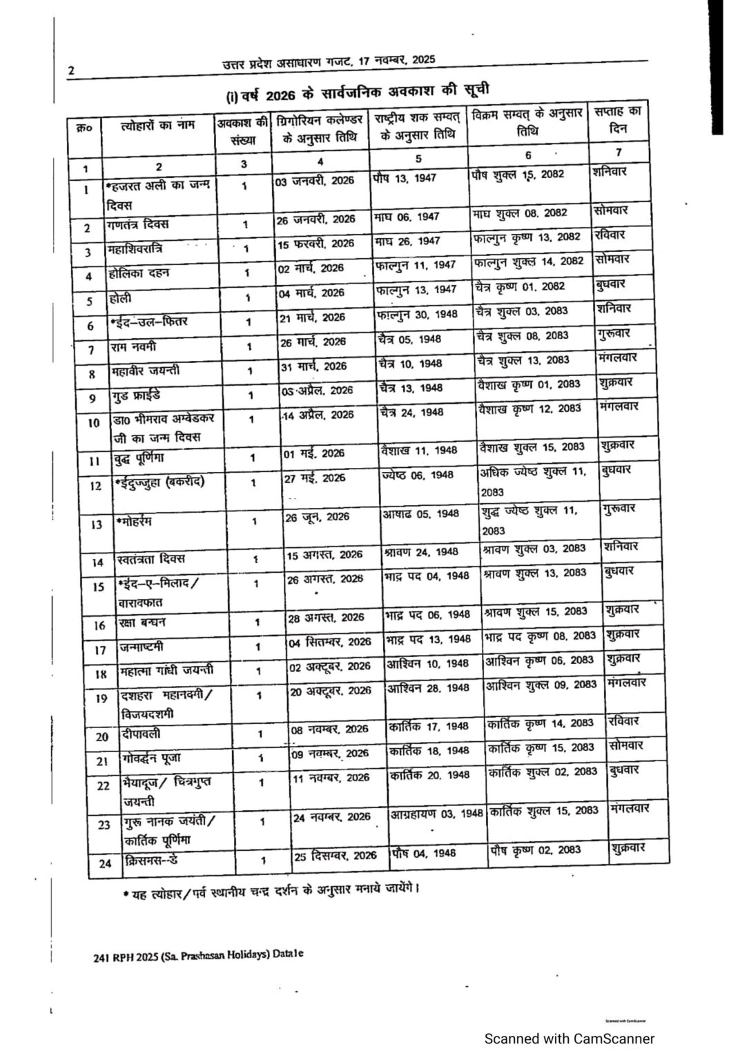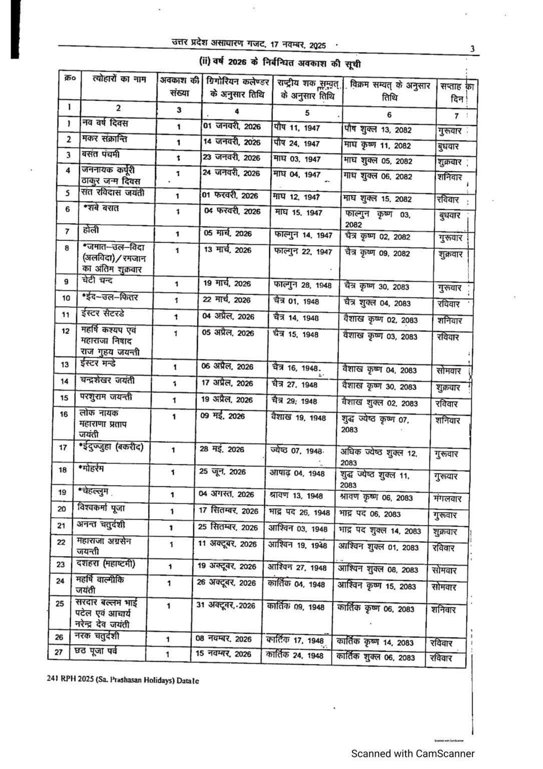 शासन द्वारा वर्ष 2026 की अवकाश तालिका जारी, देखें व डाउनलोड करें Holiday table for the year 2026 by the UP government January 20, 2026 by Ravi Singh शासन द्वारा वर्ष 2026 की अवकाश तालिका जारी, देखें व डाउनलोड करें Holiday table for the year 2026 by the UP government